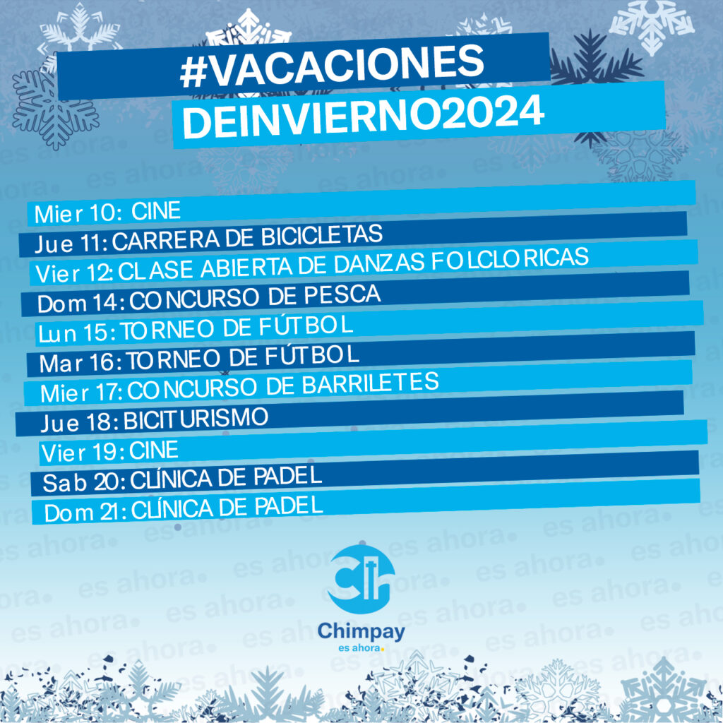 La Municipalidad de Chimpay, en conjunto con Secretarías y Subsecretarías proponen actividades deportivas y recreativas para estas #Vacacionesdeinvierno2024.