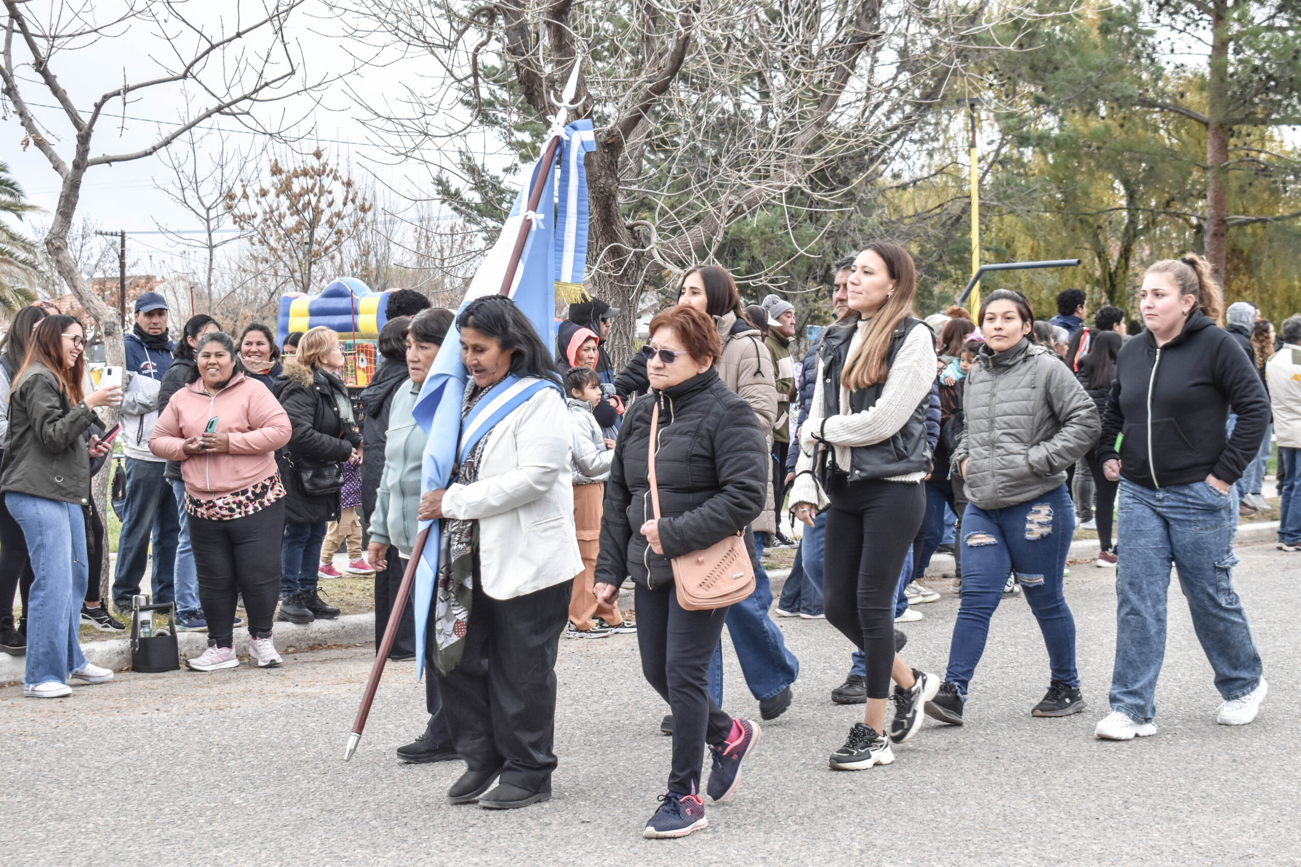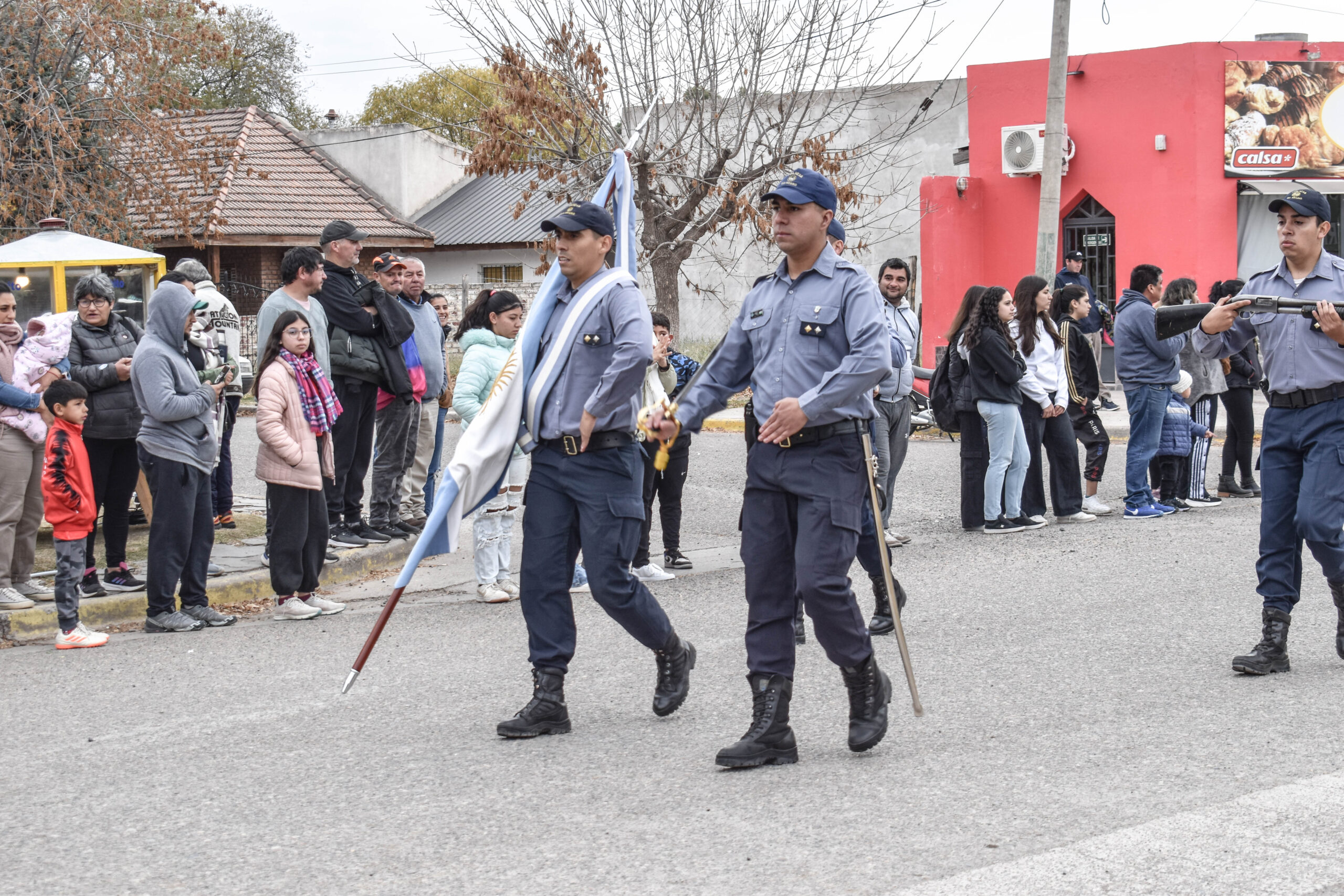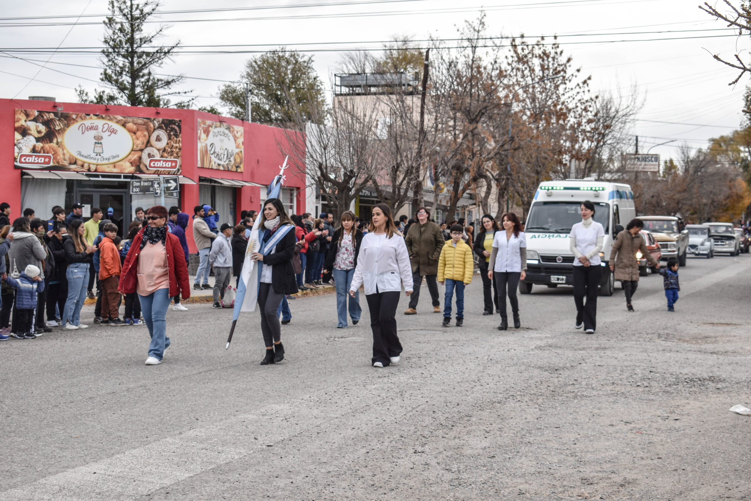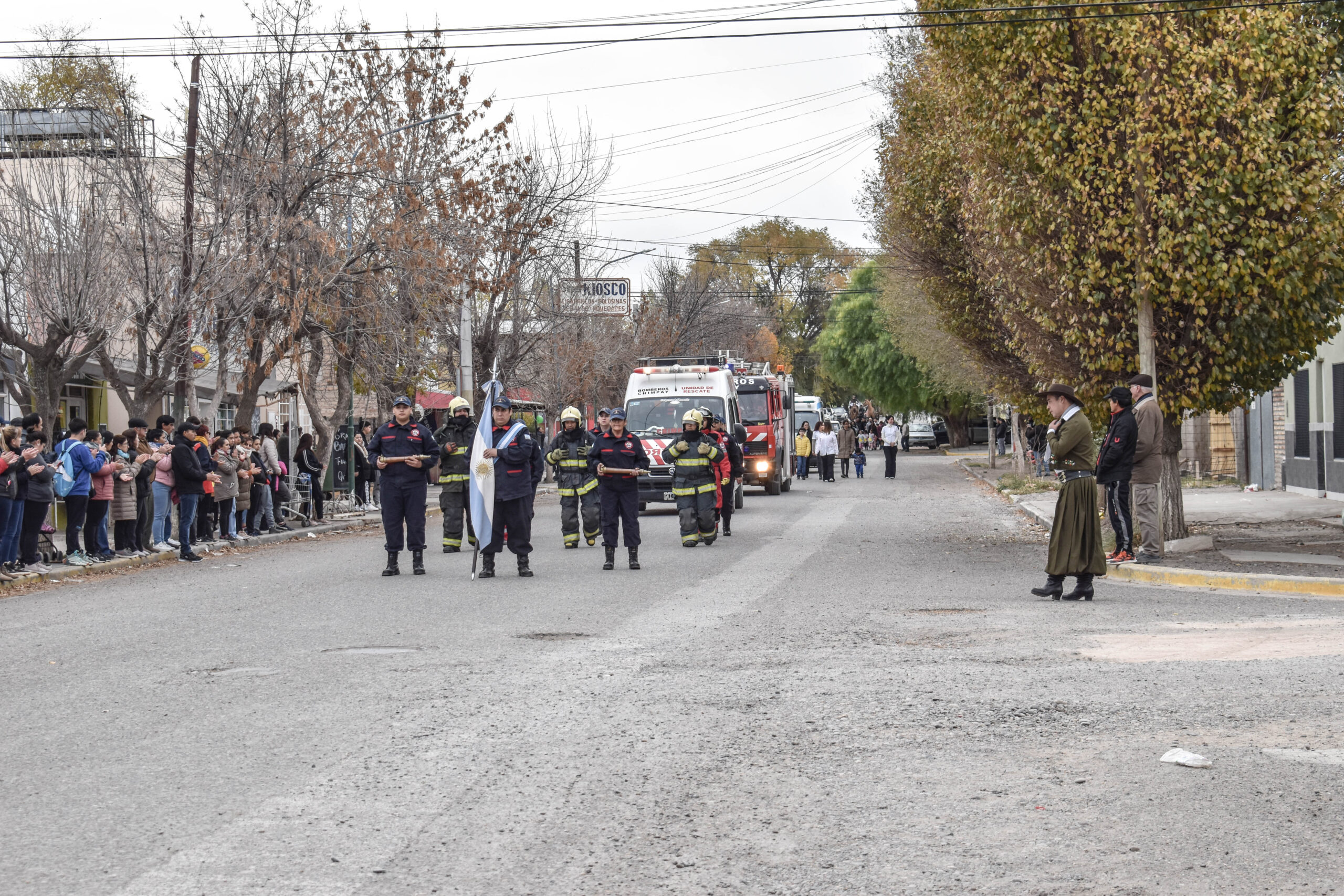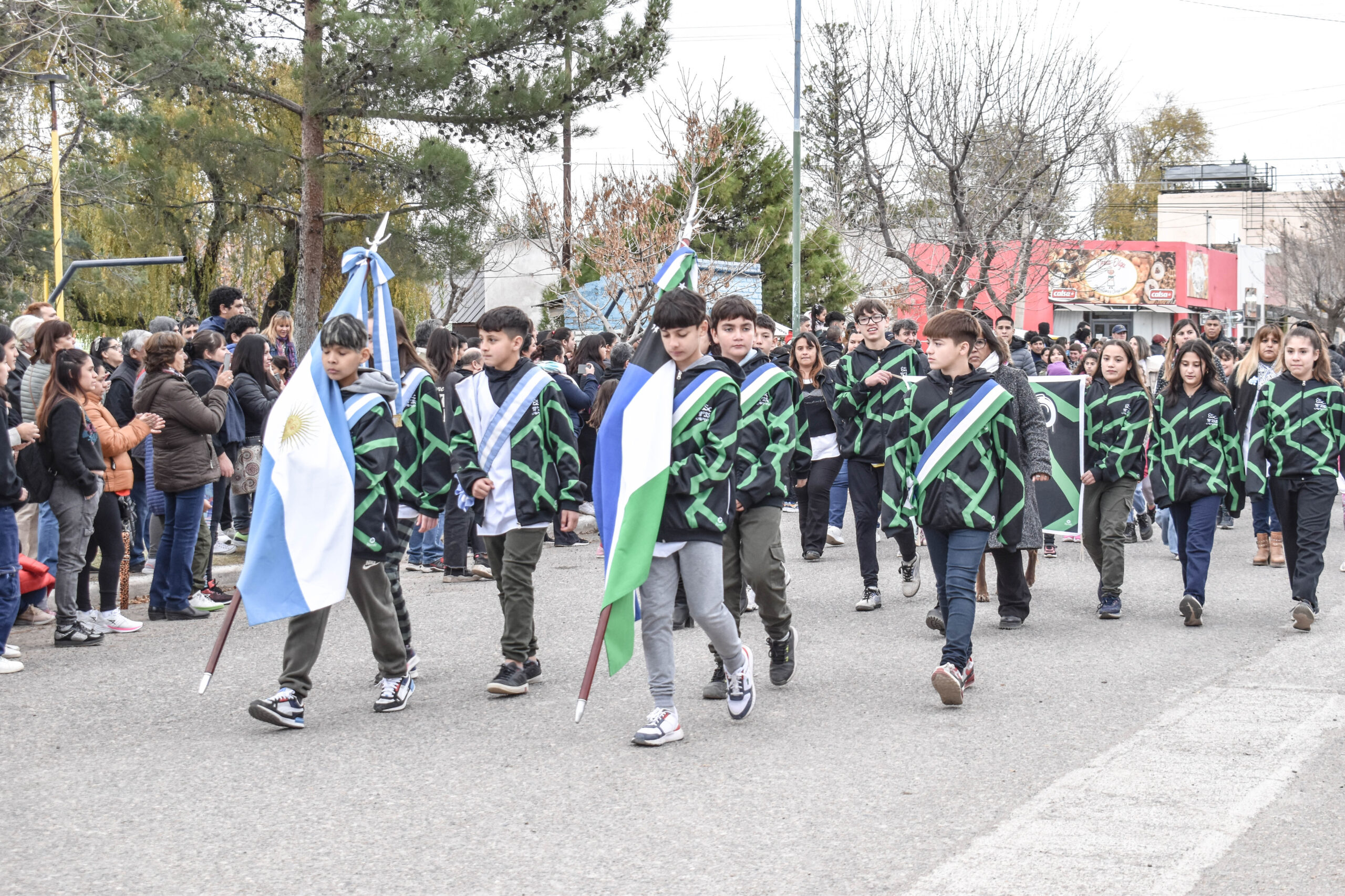 Las actividades se trasladaron hacia el palco ubicado en calle Sarmiento entre el edificio municipal y la Plaza Enrique Hernanz, allí inició el tradicional desfile de las diferentes instituciones.