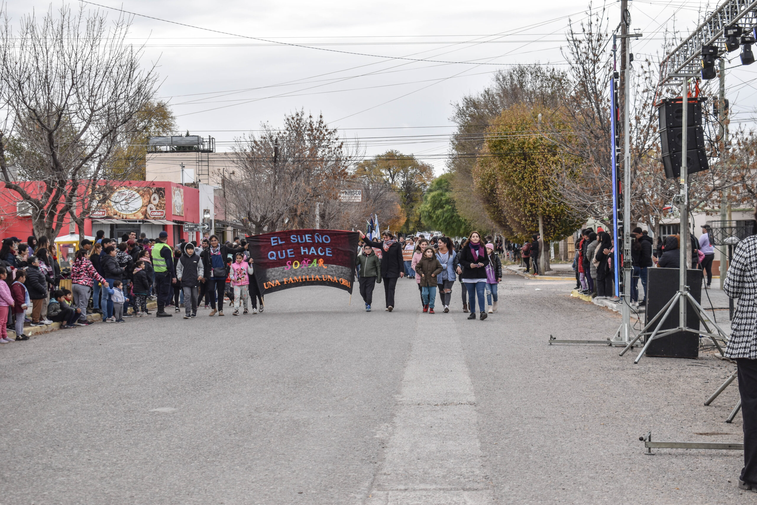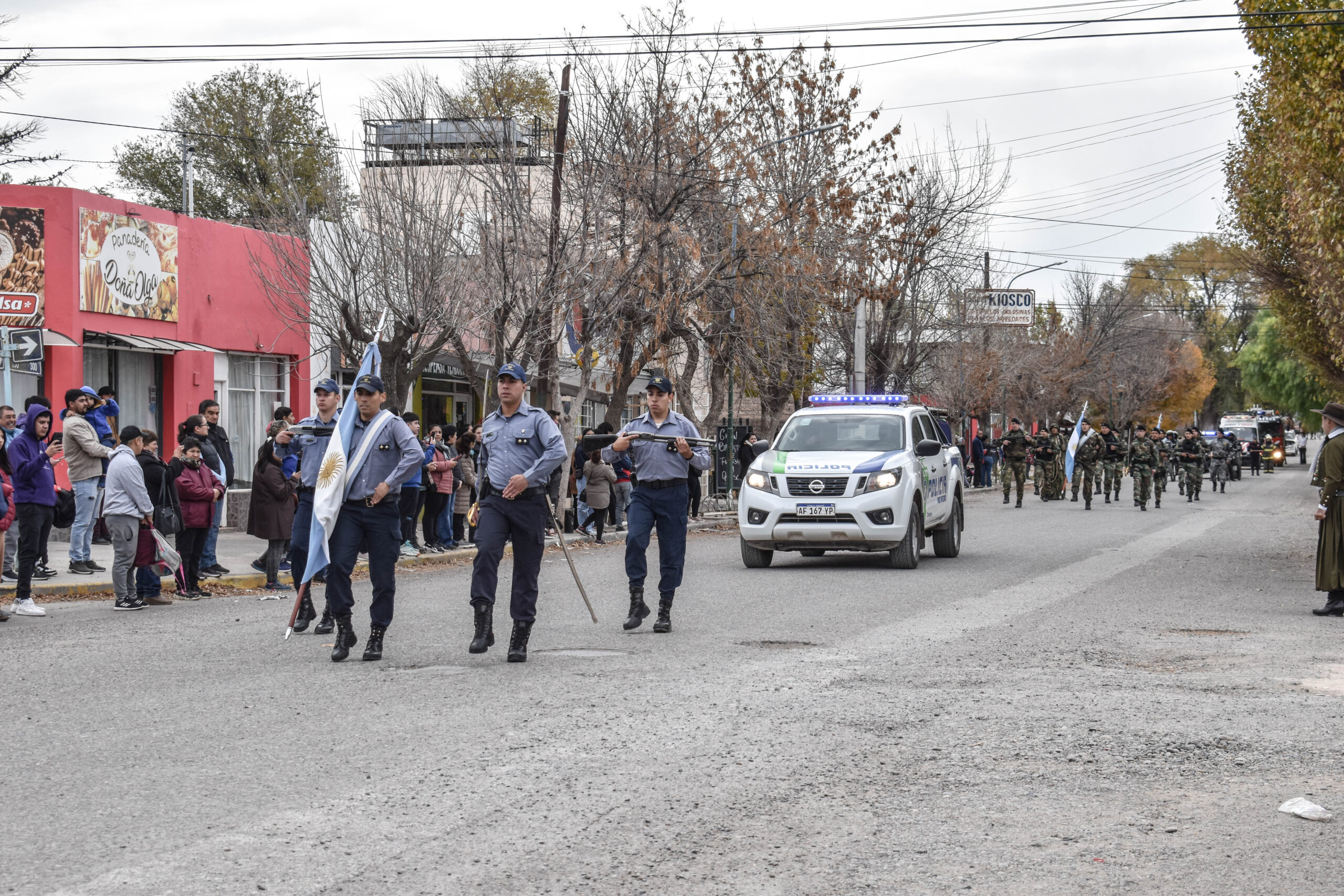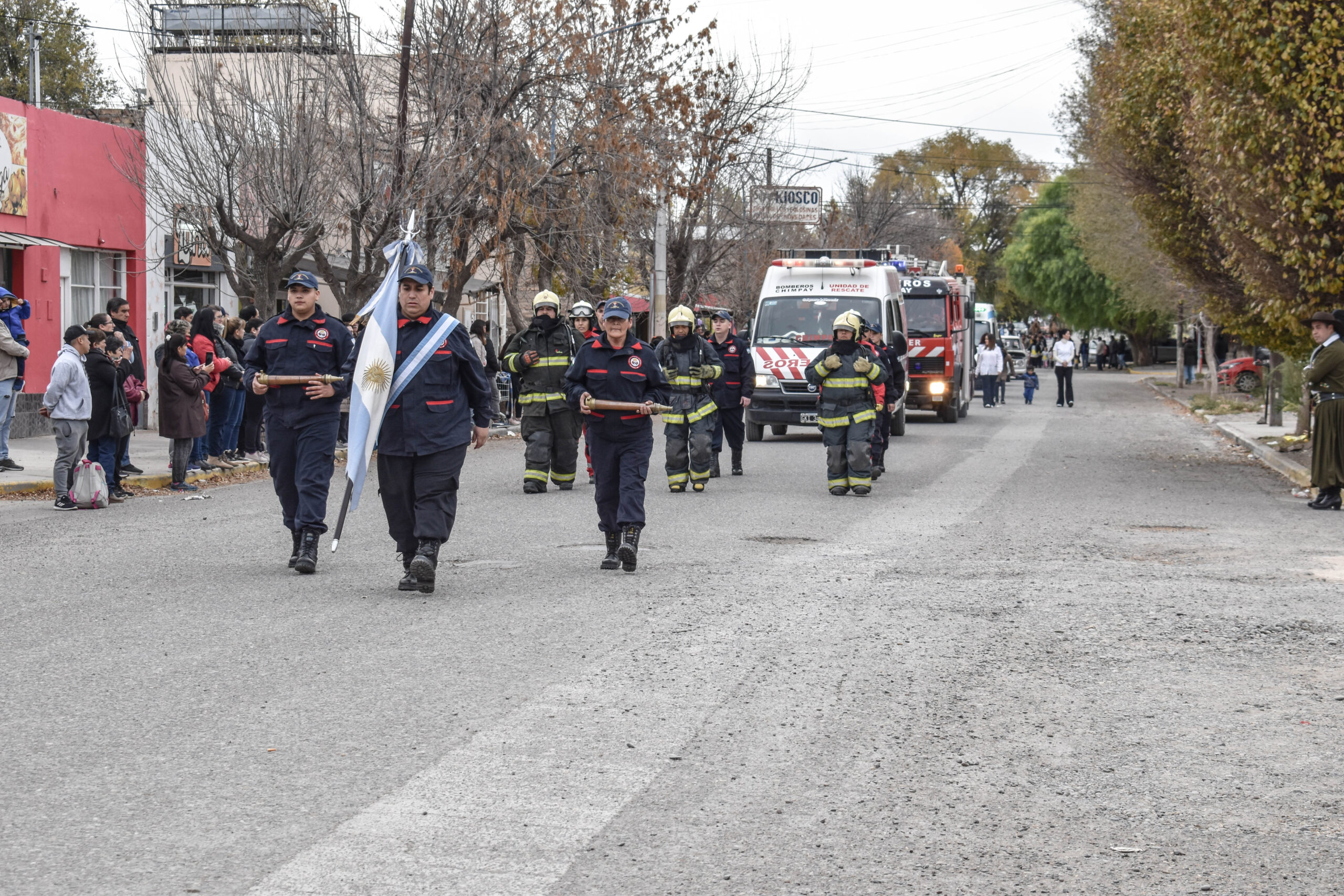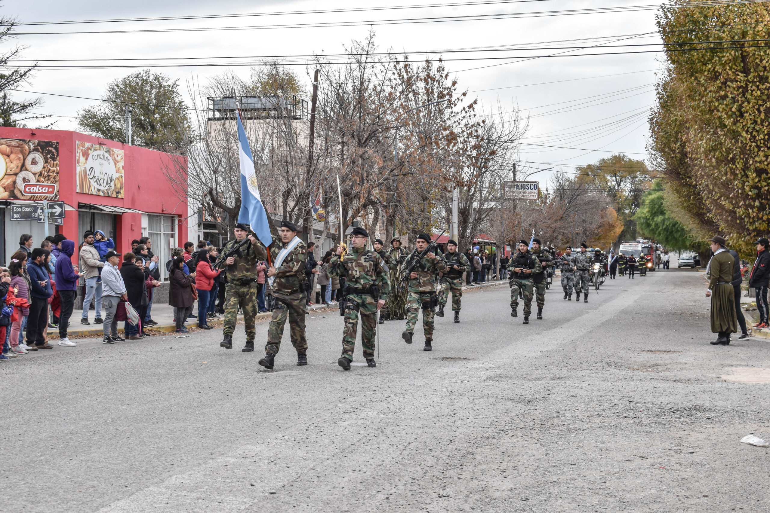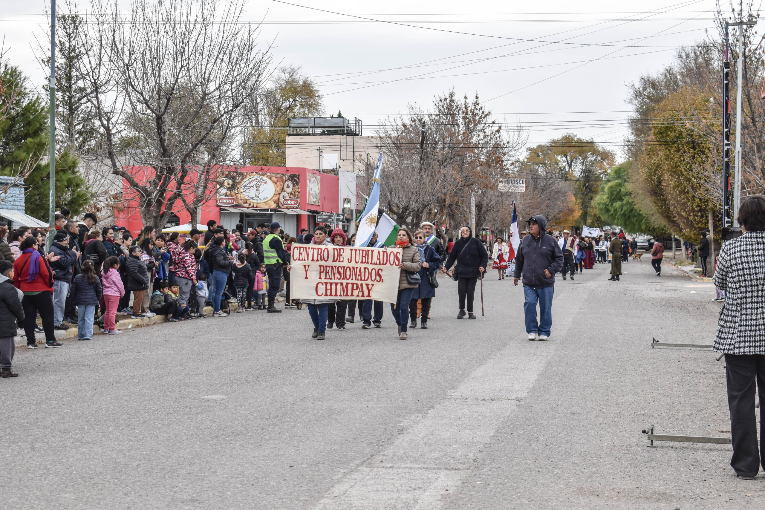 Las actividades se trasladaron hacia el palco ubicado en calle Sarmiento entre el edificio municipal y la Plaza Enrique Hernanz, allí inició el tradicional desfile de las diferentes instituciones.