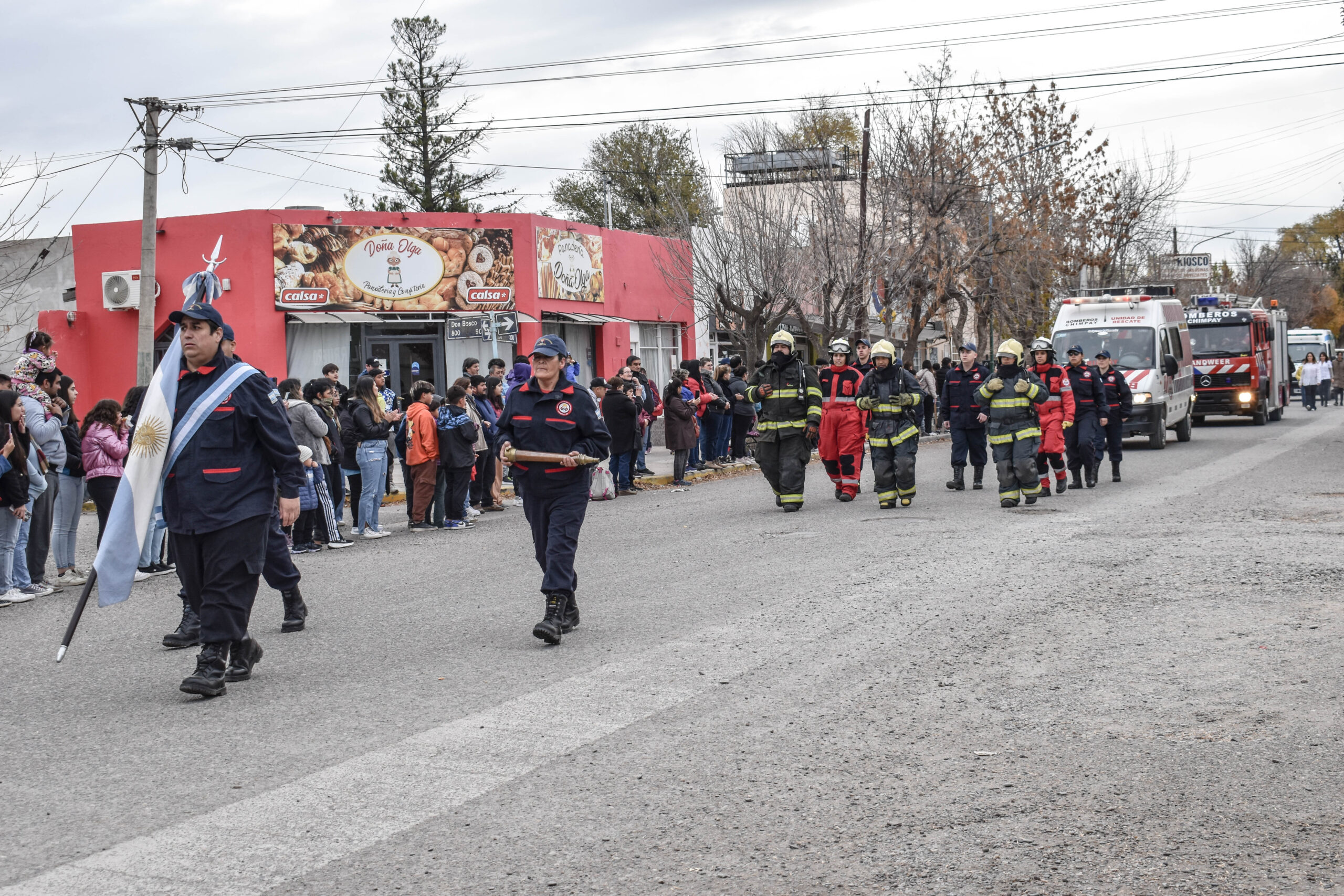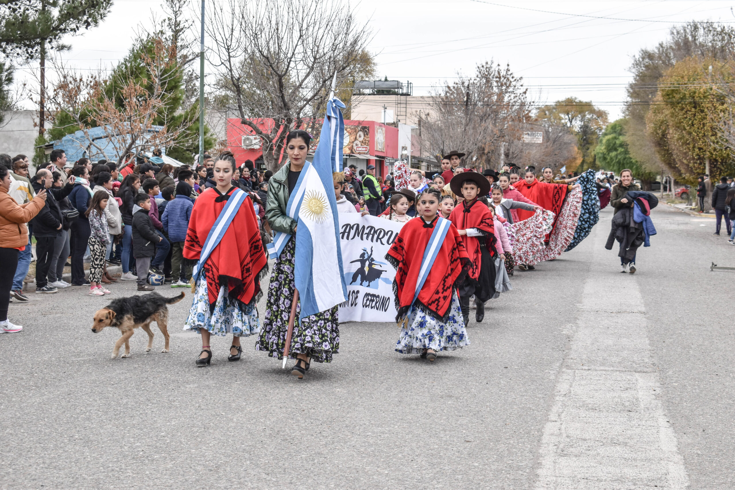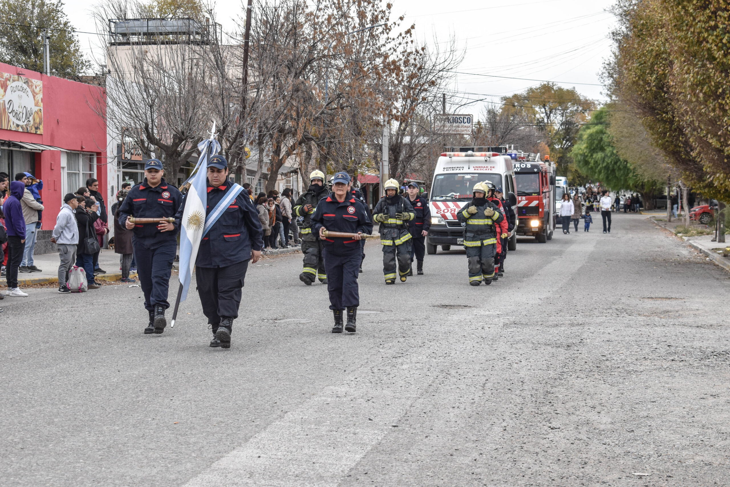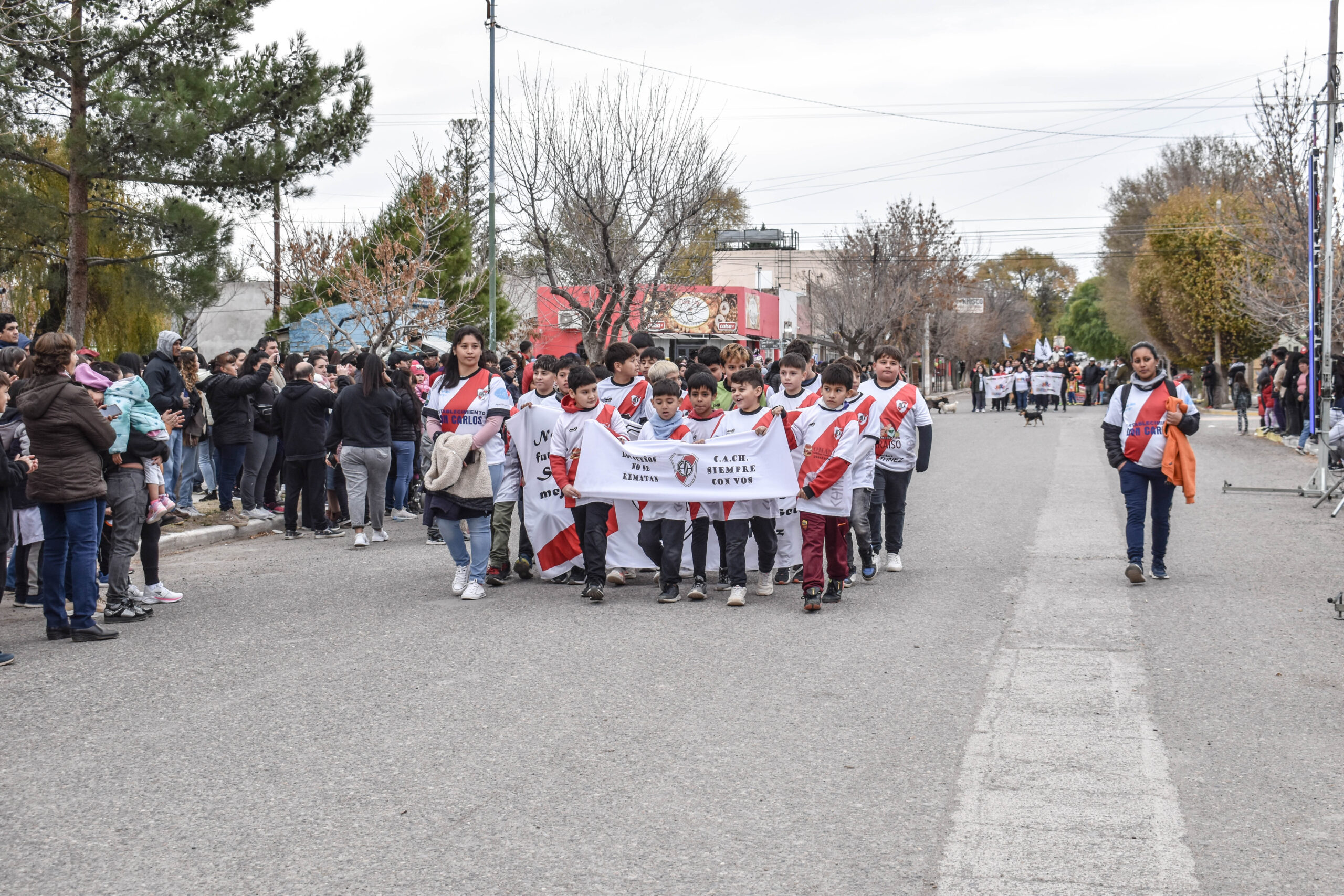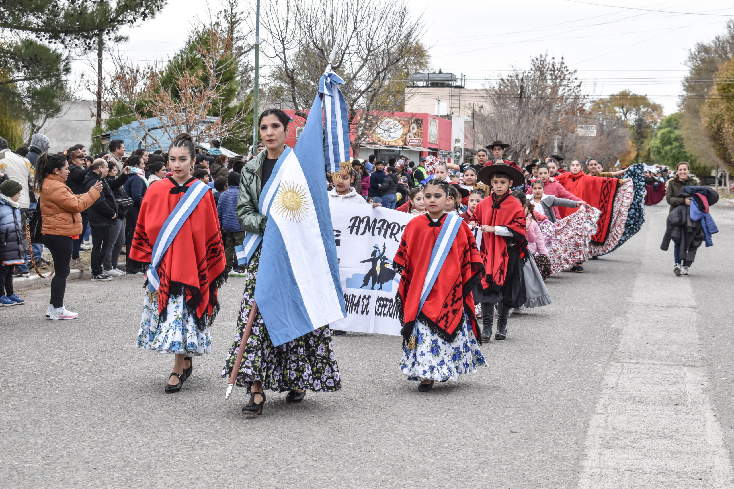 Las actividades se trasladaron hacia el palco ubicado en calle Sarmiento entre el edificio municipal y la Plaza Enrique Hernanz, allí inició el tradicional desfile de las diferentes instituciones.