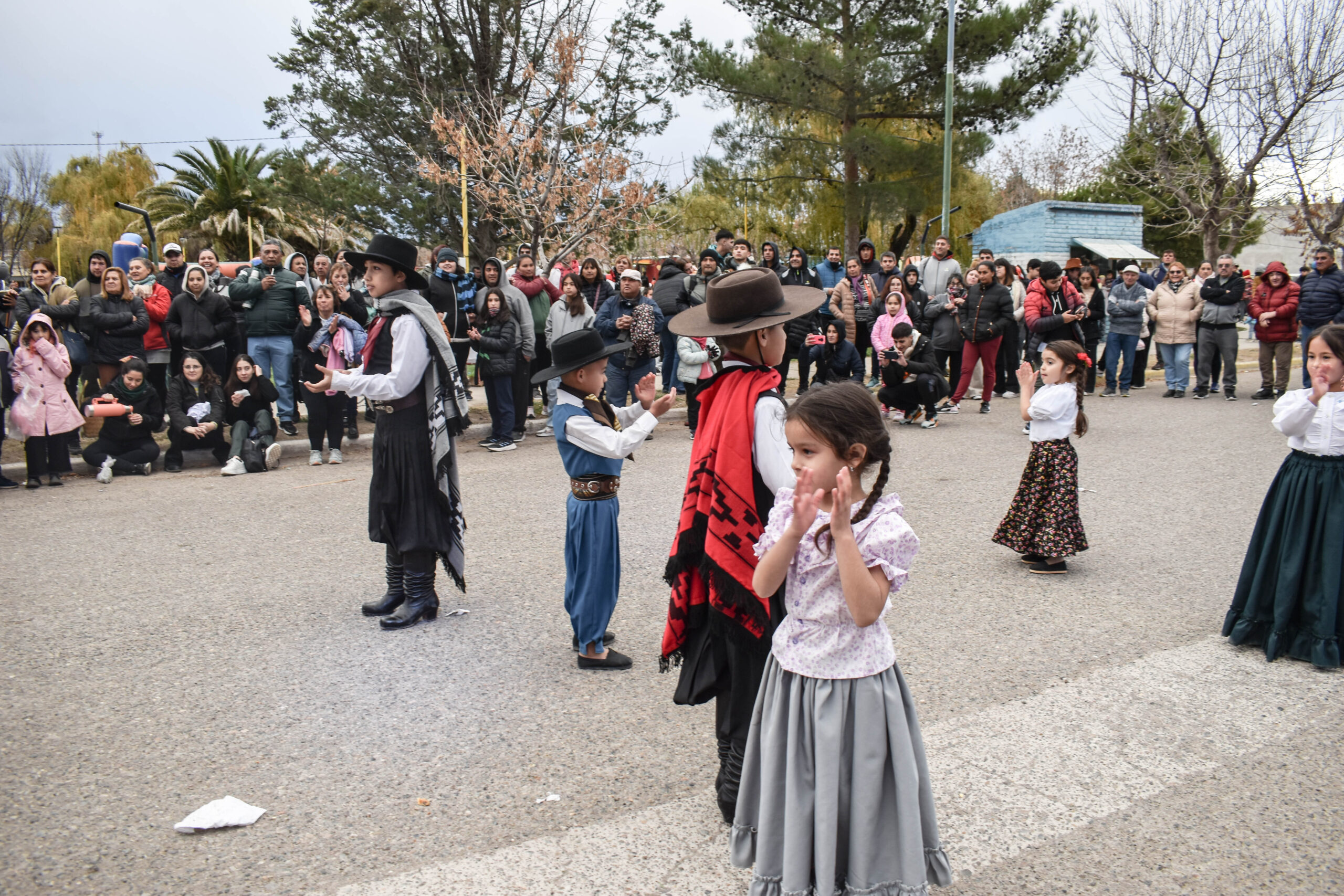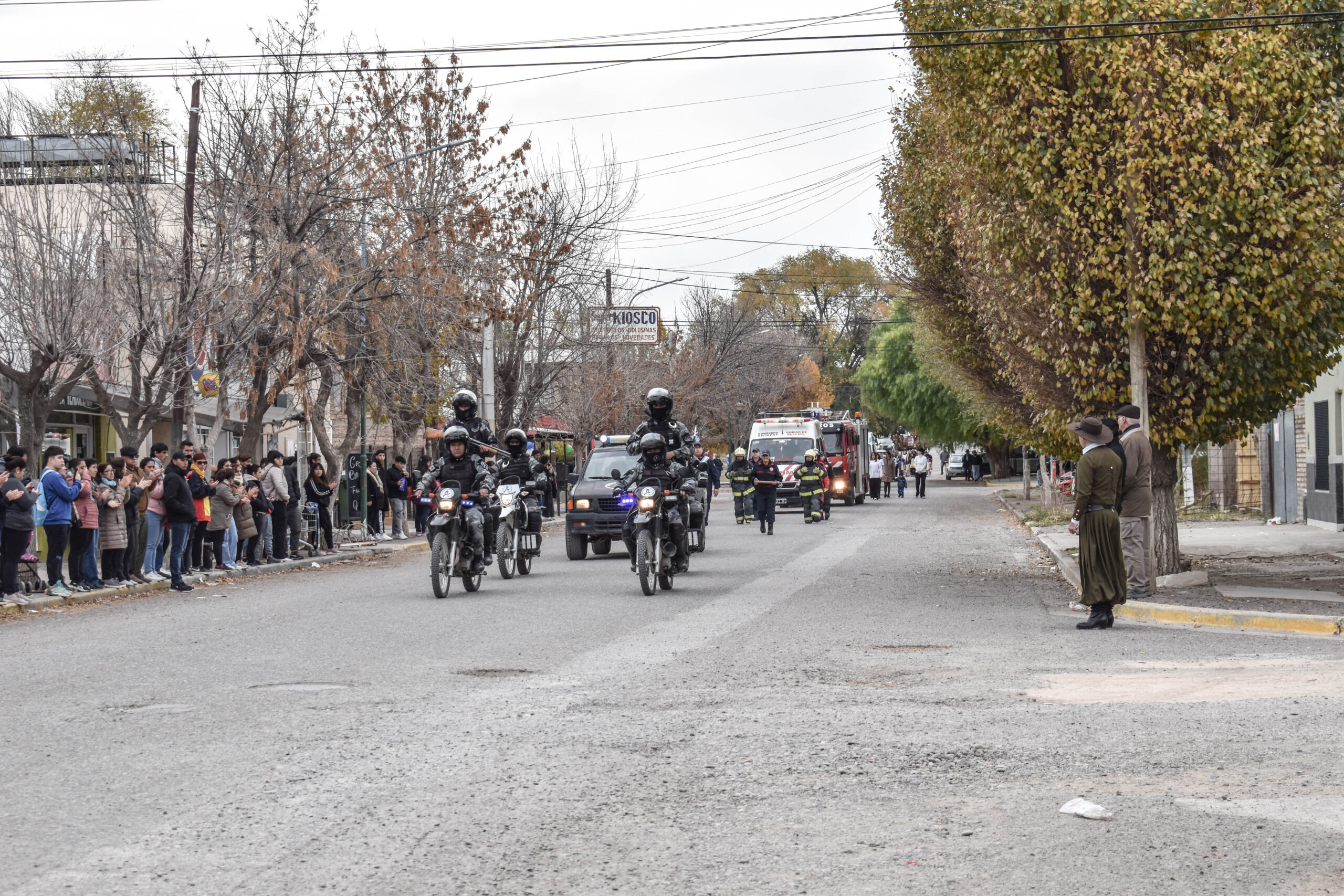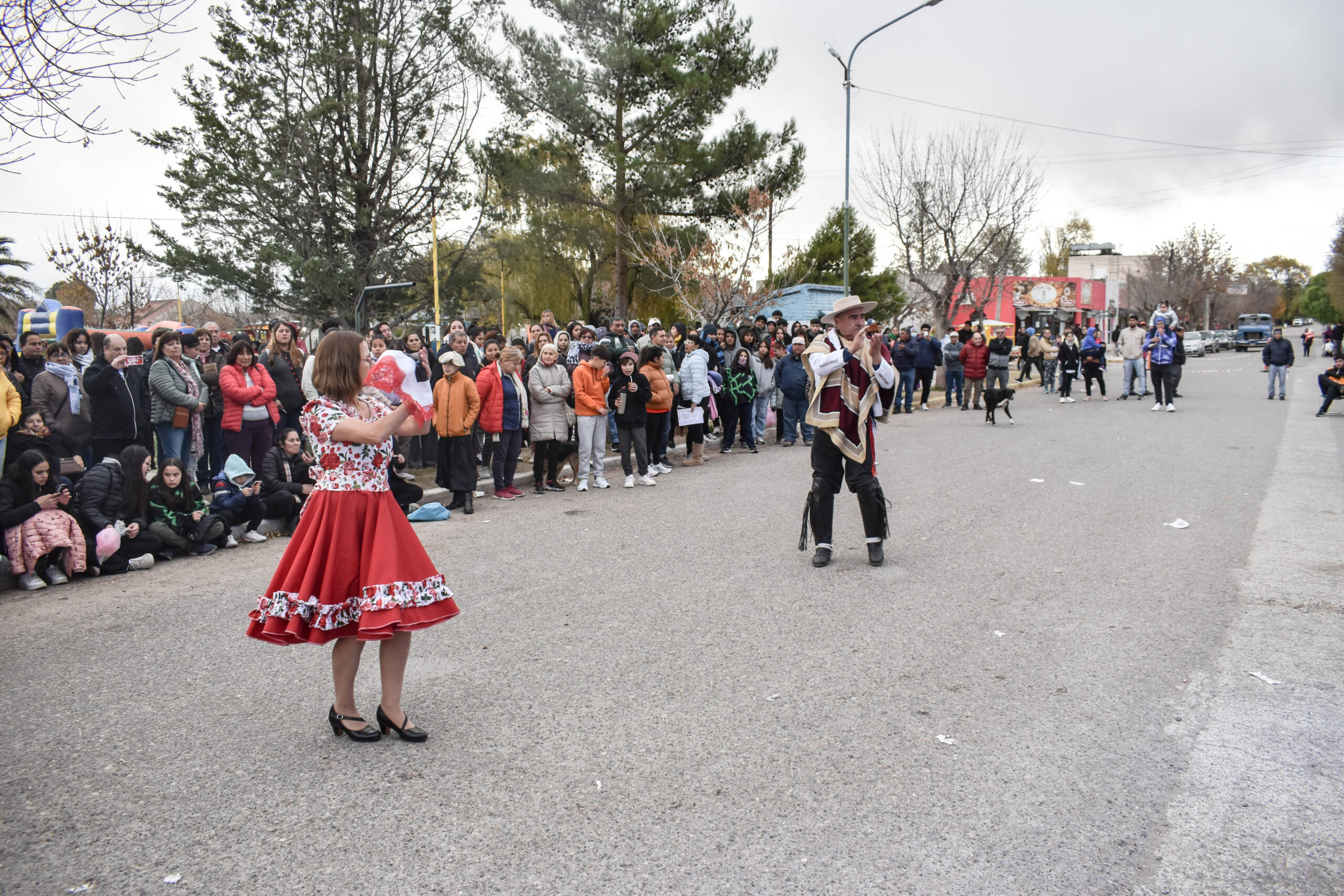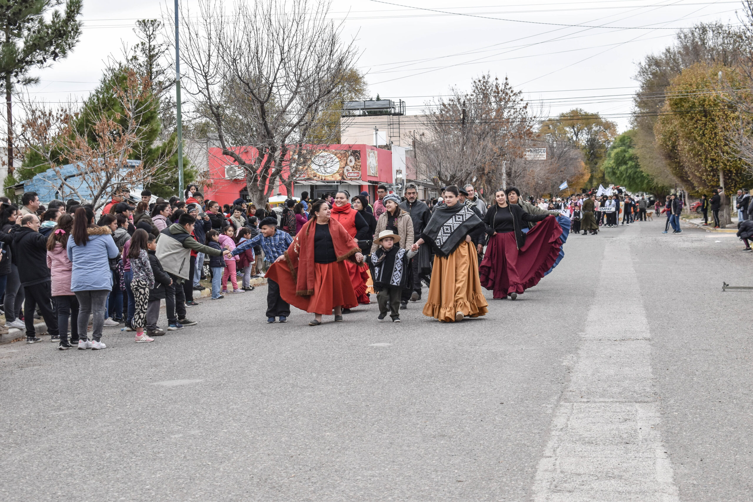 Las actividades se trasladaron hacia el palco ubicado en calle Sarmiento entre el edificio municipal y la Plaza Enrique Hernanz, allí inició el tradicional desfile de las diferentes instituciones.
