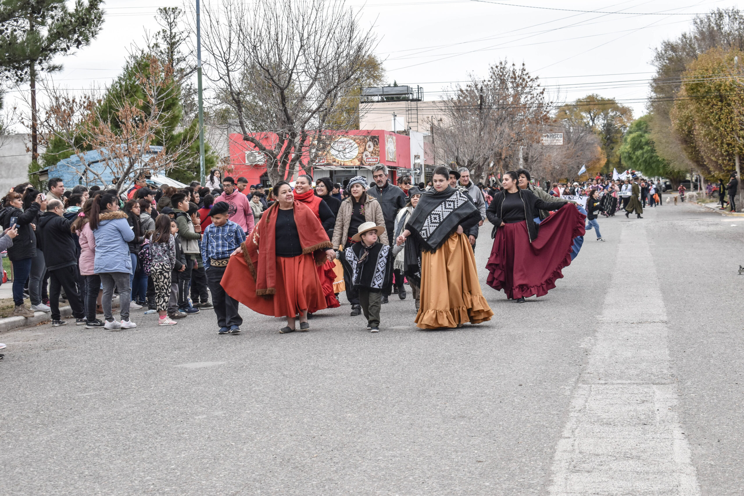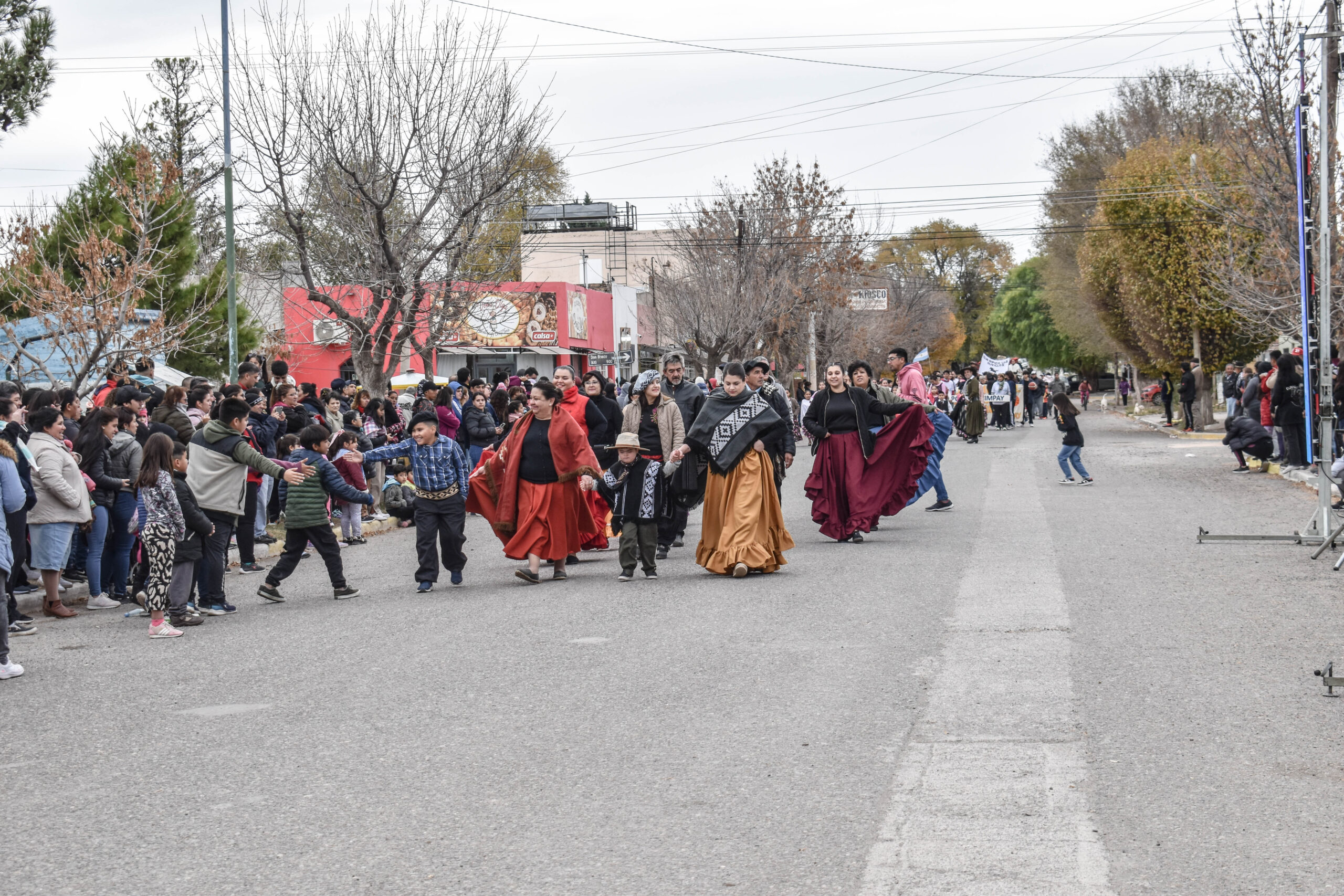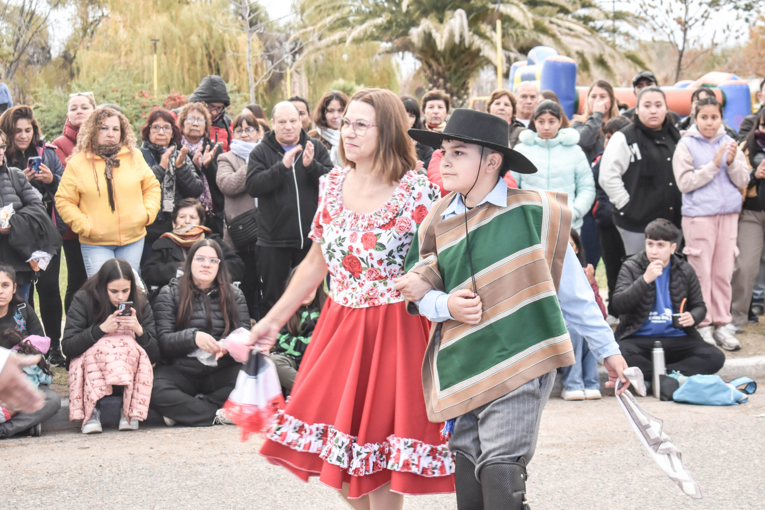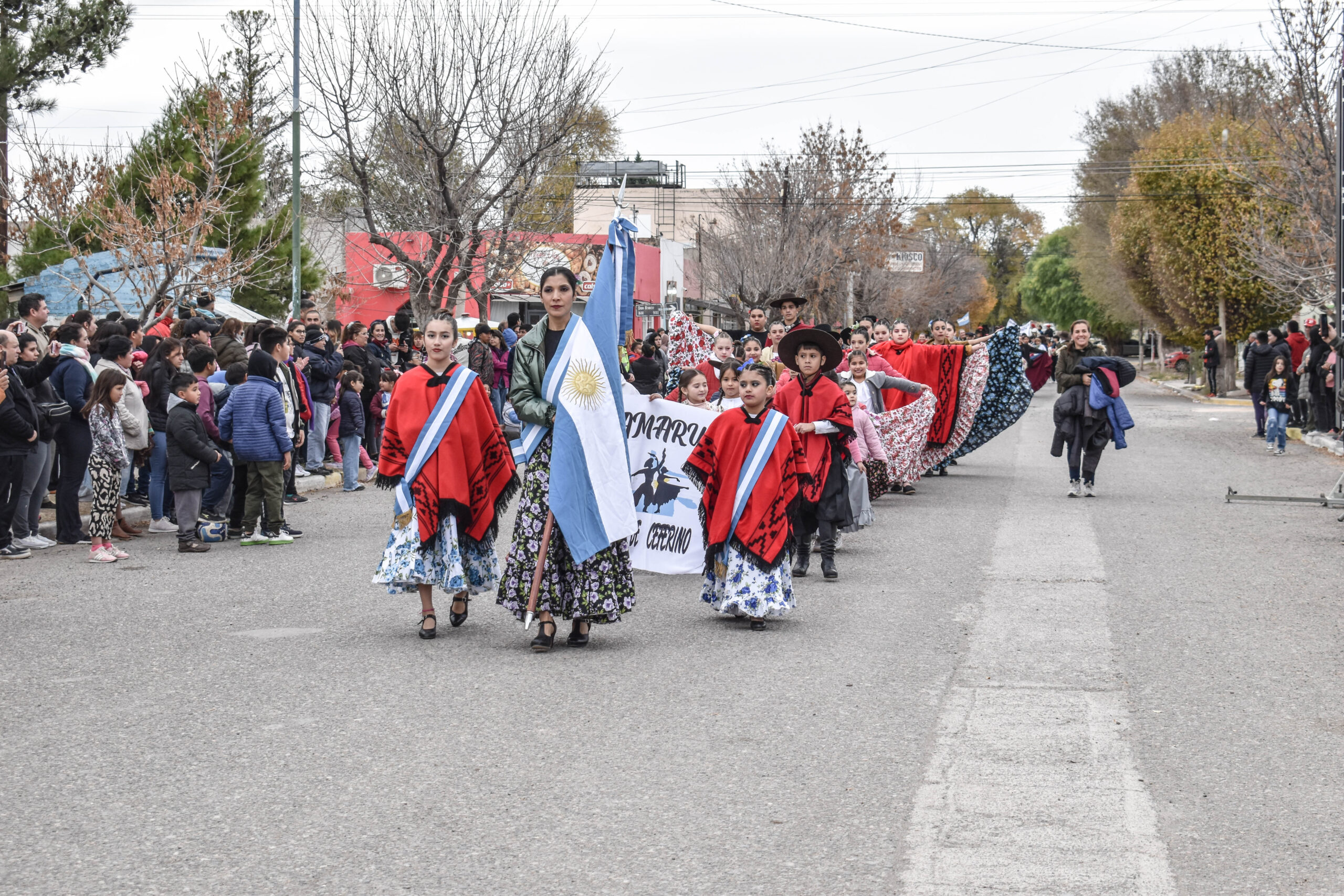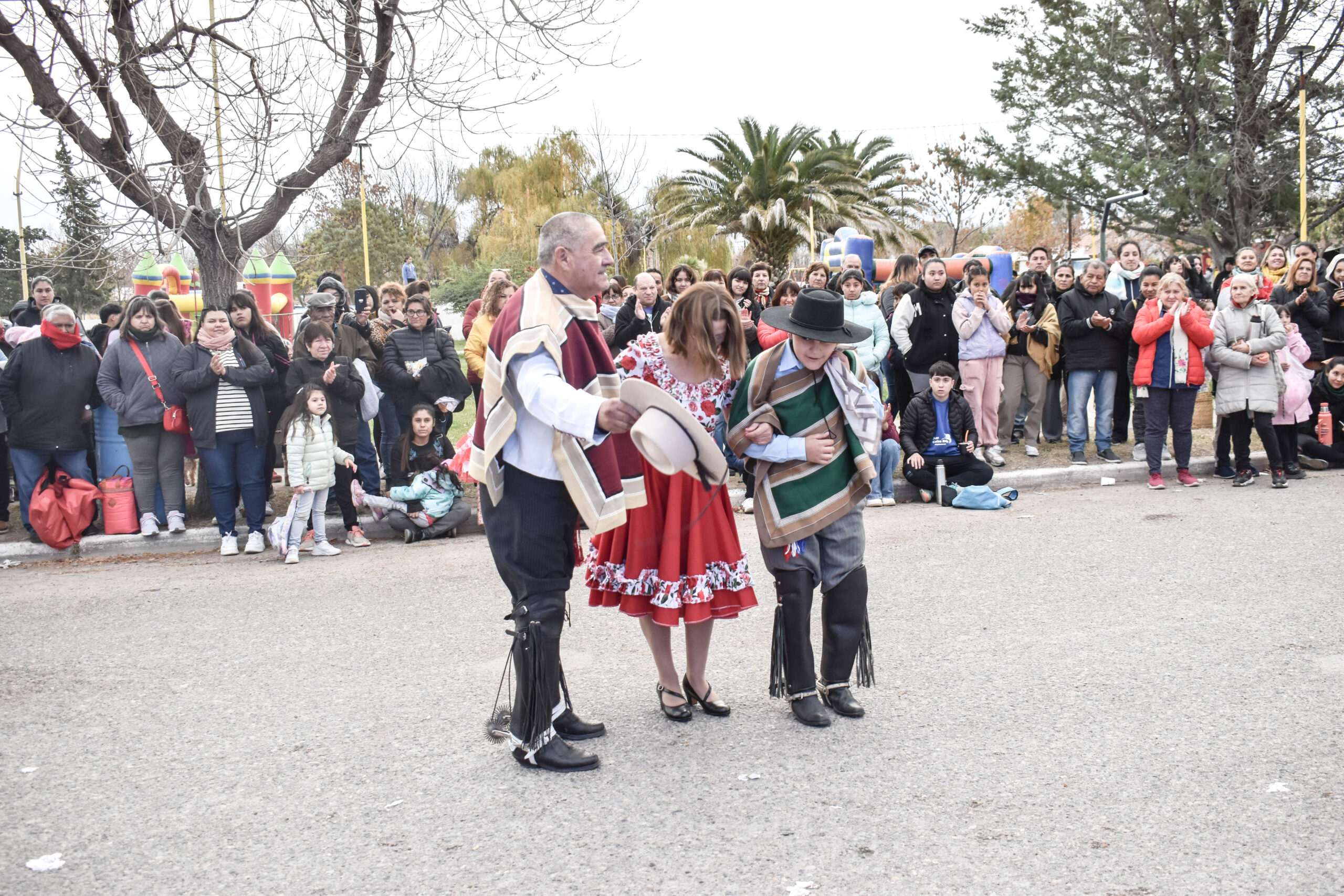 Las actividades se trasladaron hacia el palco ubicado en calle Sarmiento entre el edificio municipal y la Plaza Enrique Hernanz, allí inició el tradicional desfile de las diferentes instituciones.
