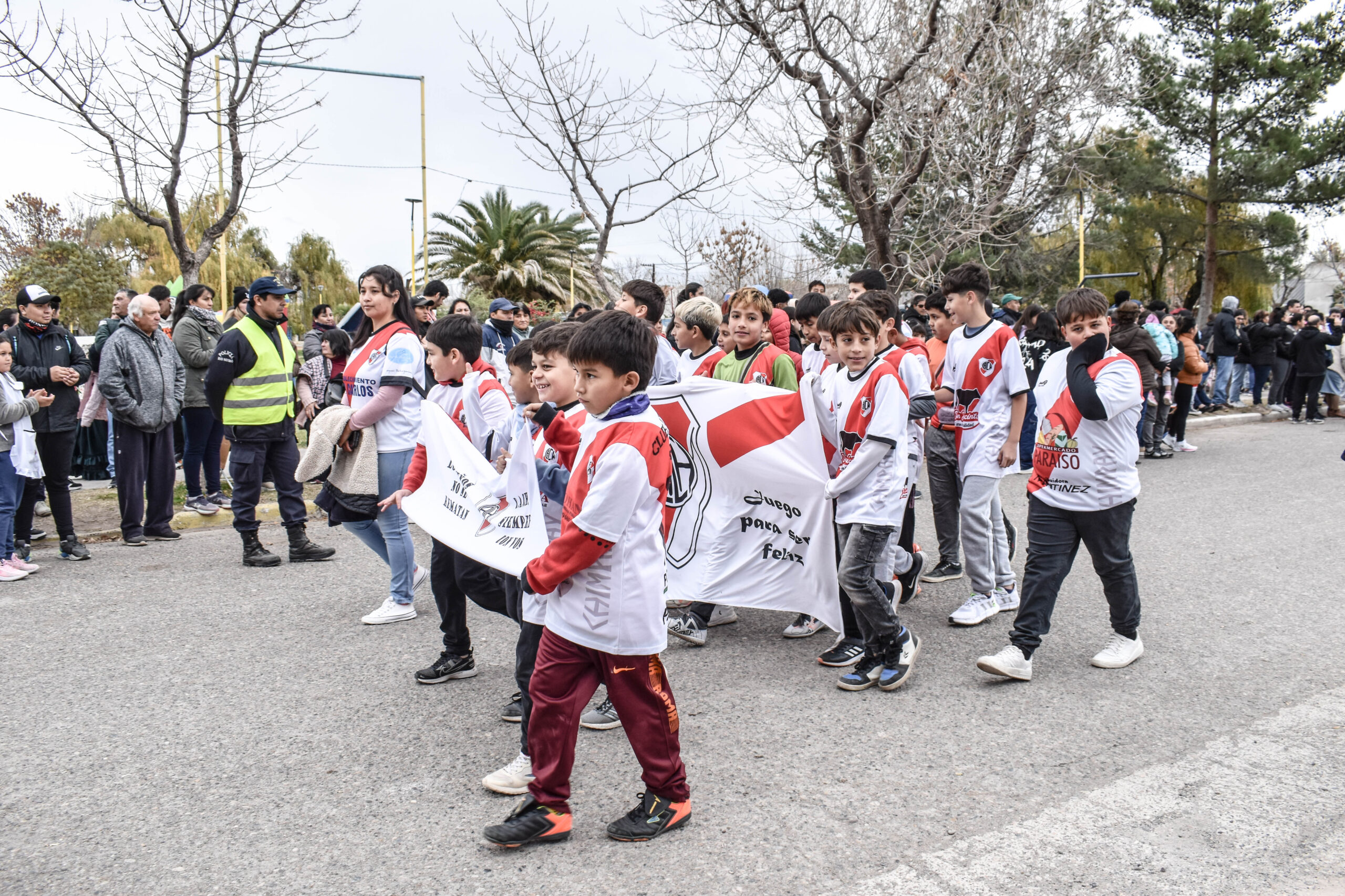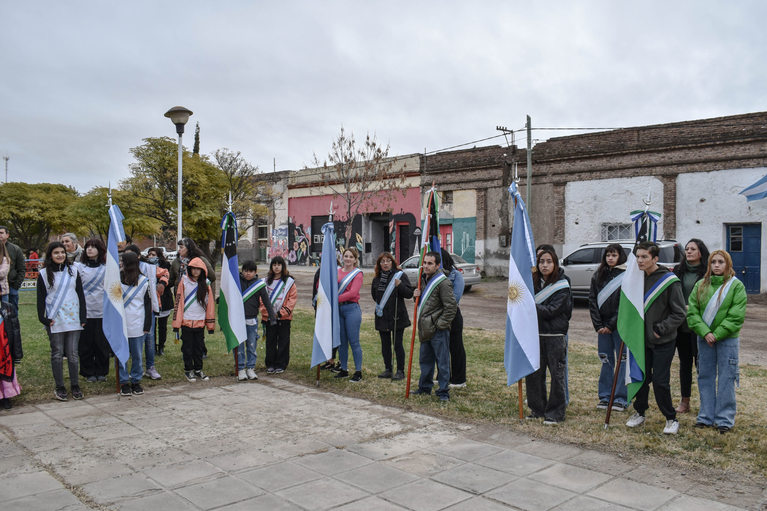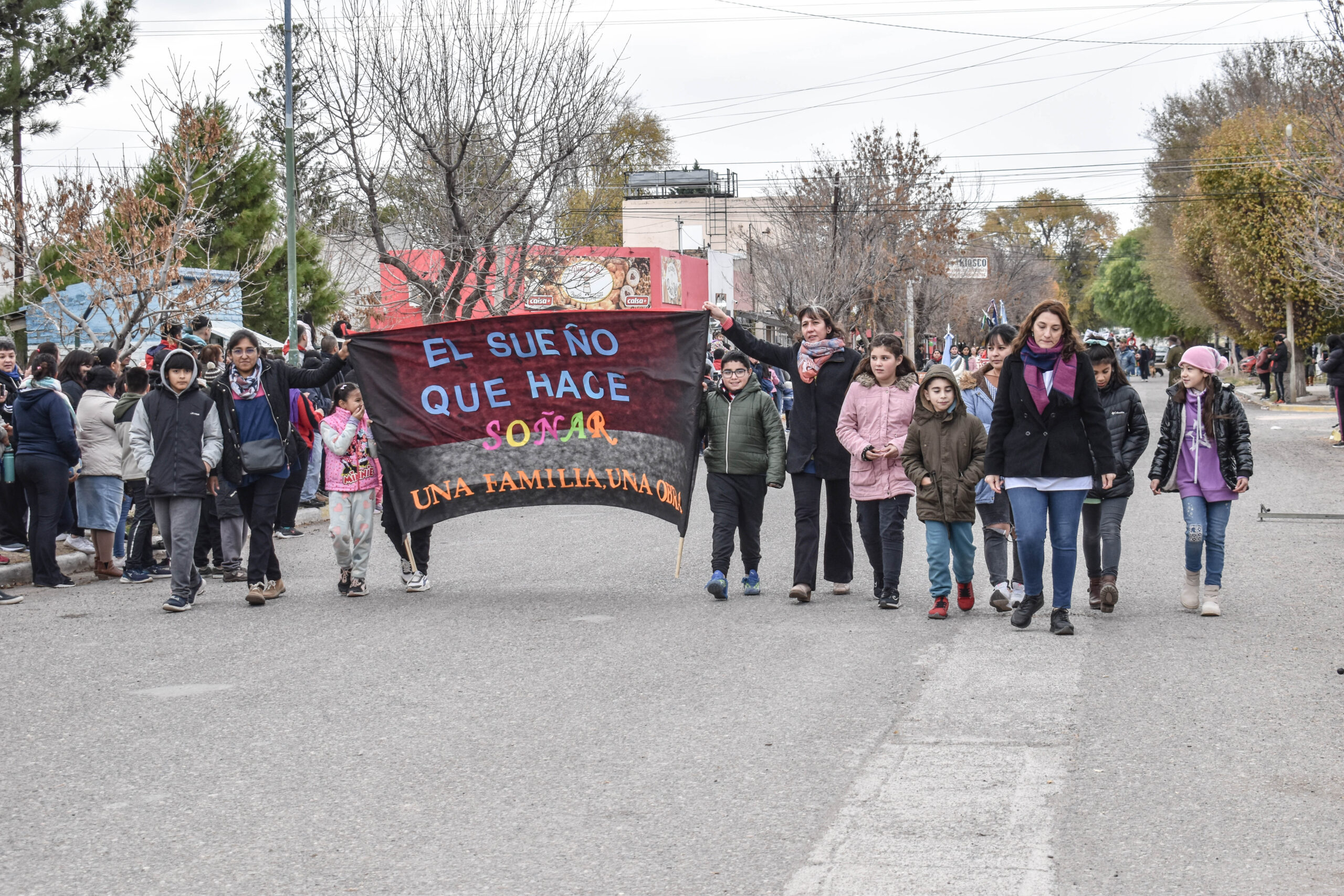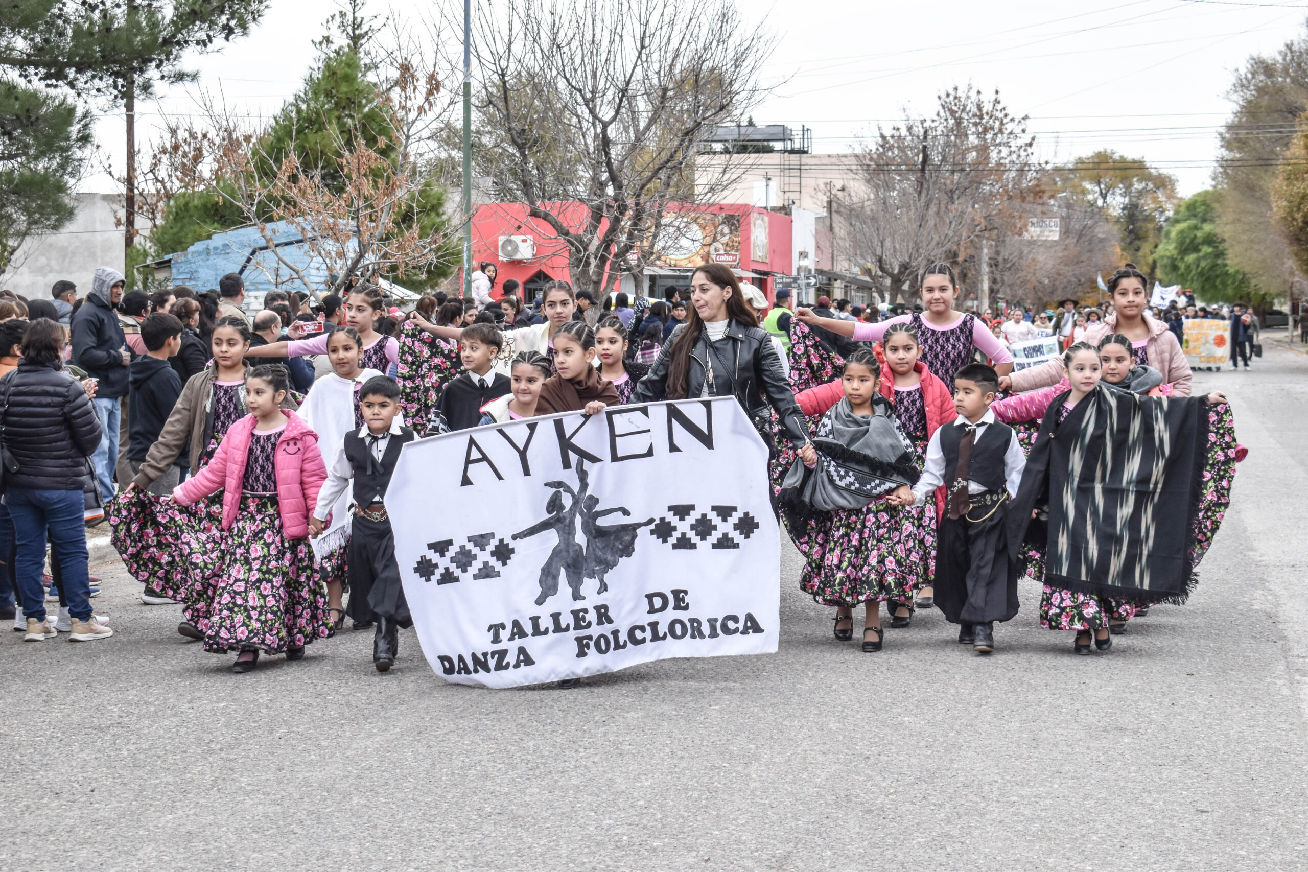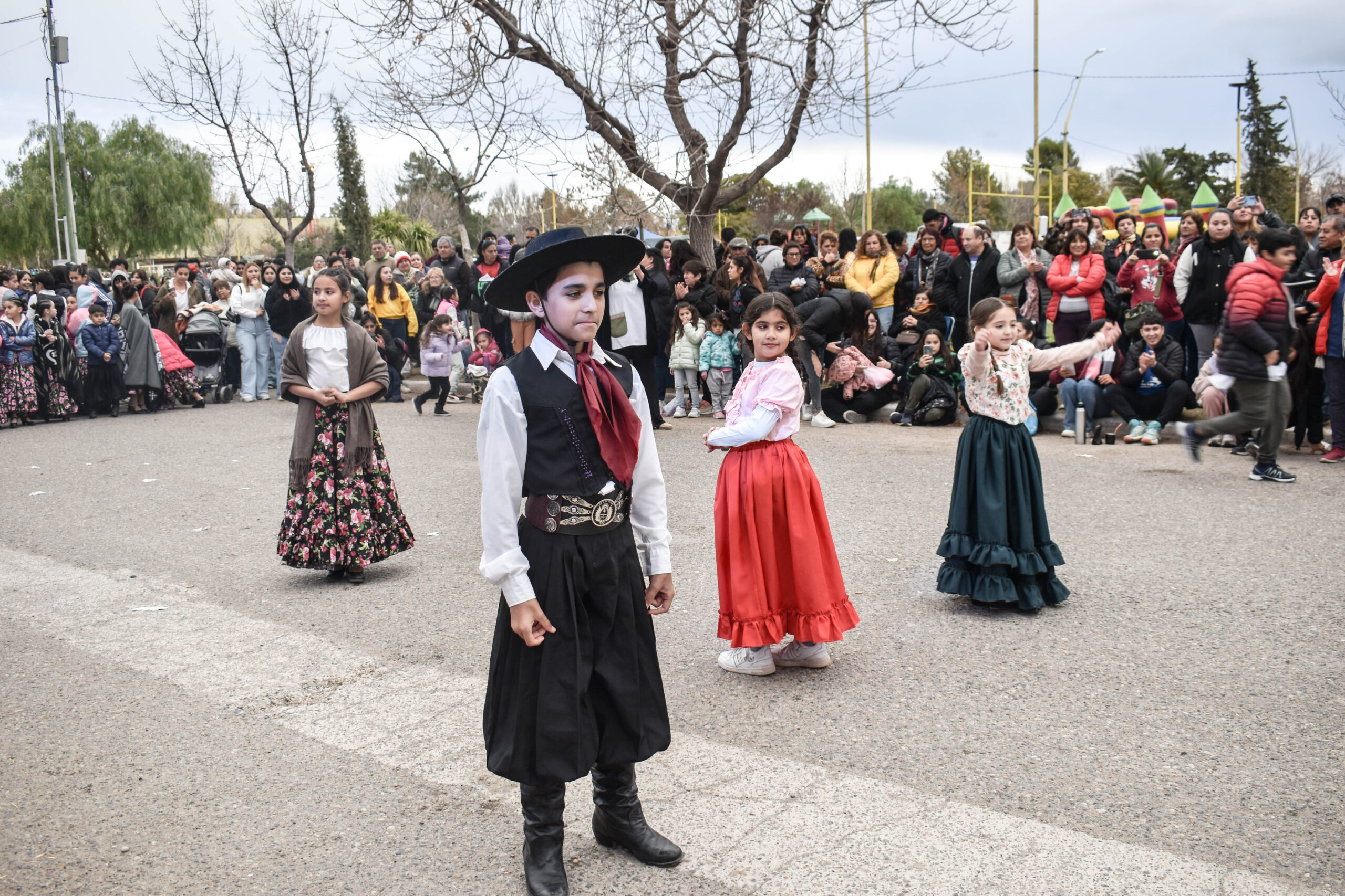Las actividades se trasladaron hacia el palco ubicado en calle Sarmiento entre el edificio municipal y la Plaza Enrique Hernanz, allí inició el tradicional desfile de las diferentes instituciones.