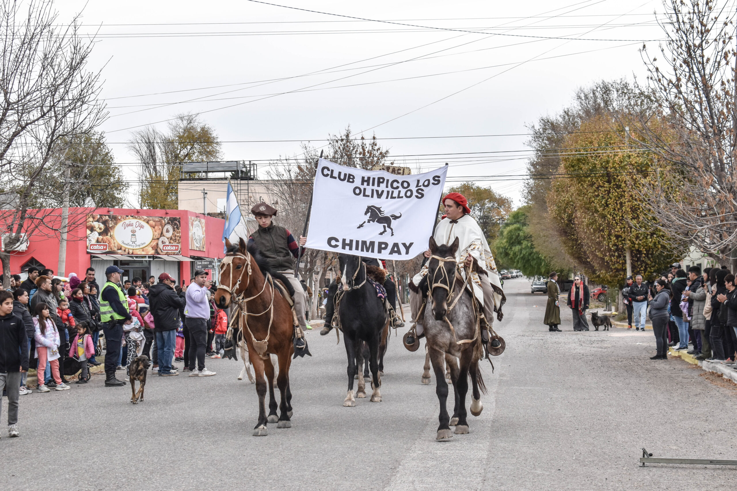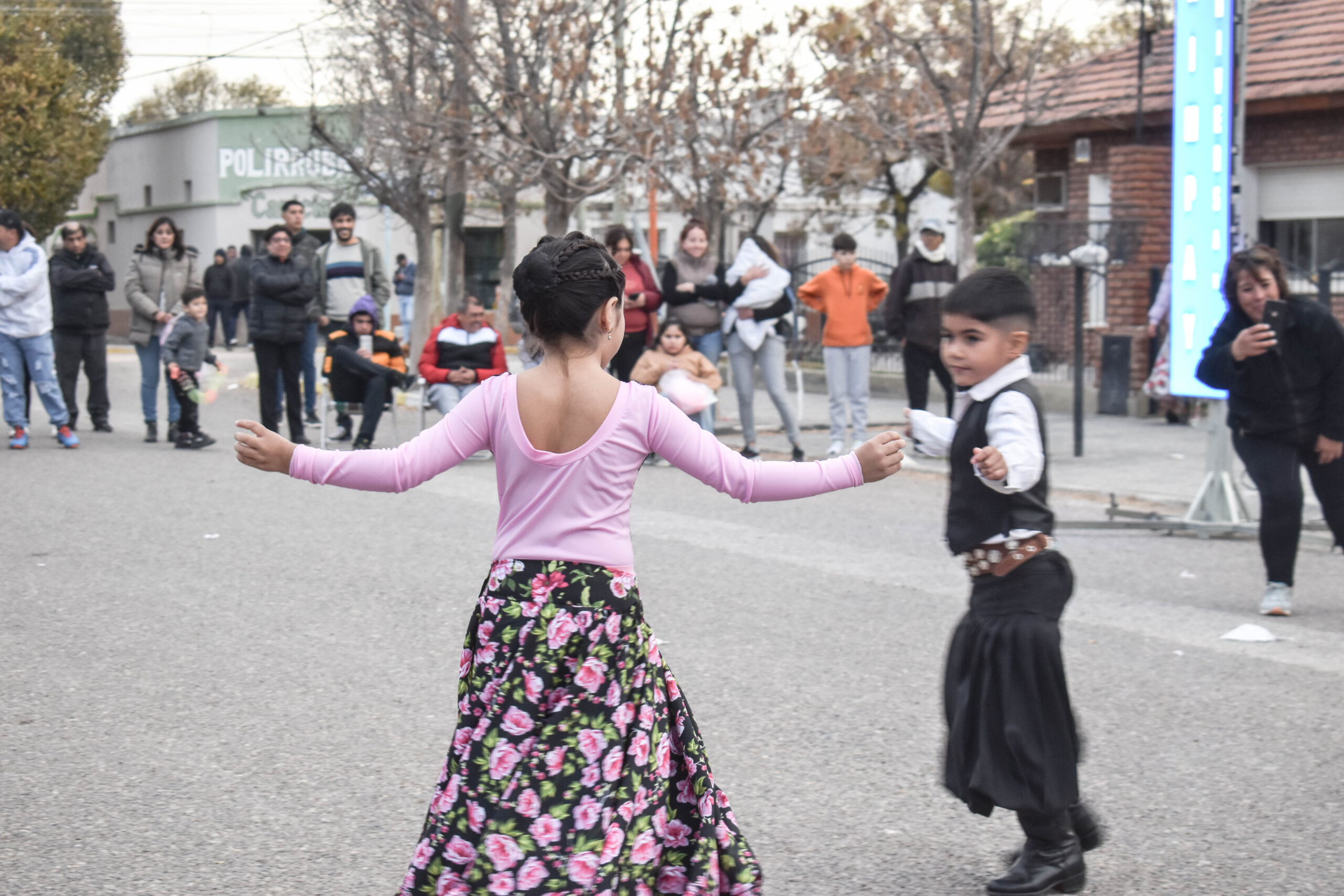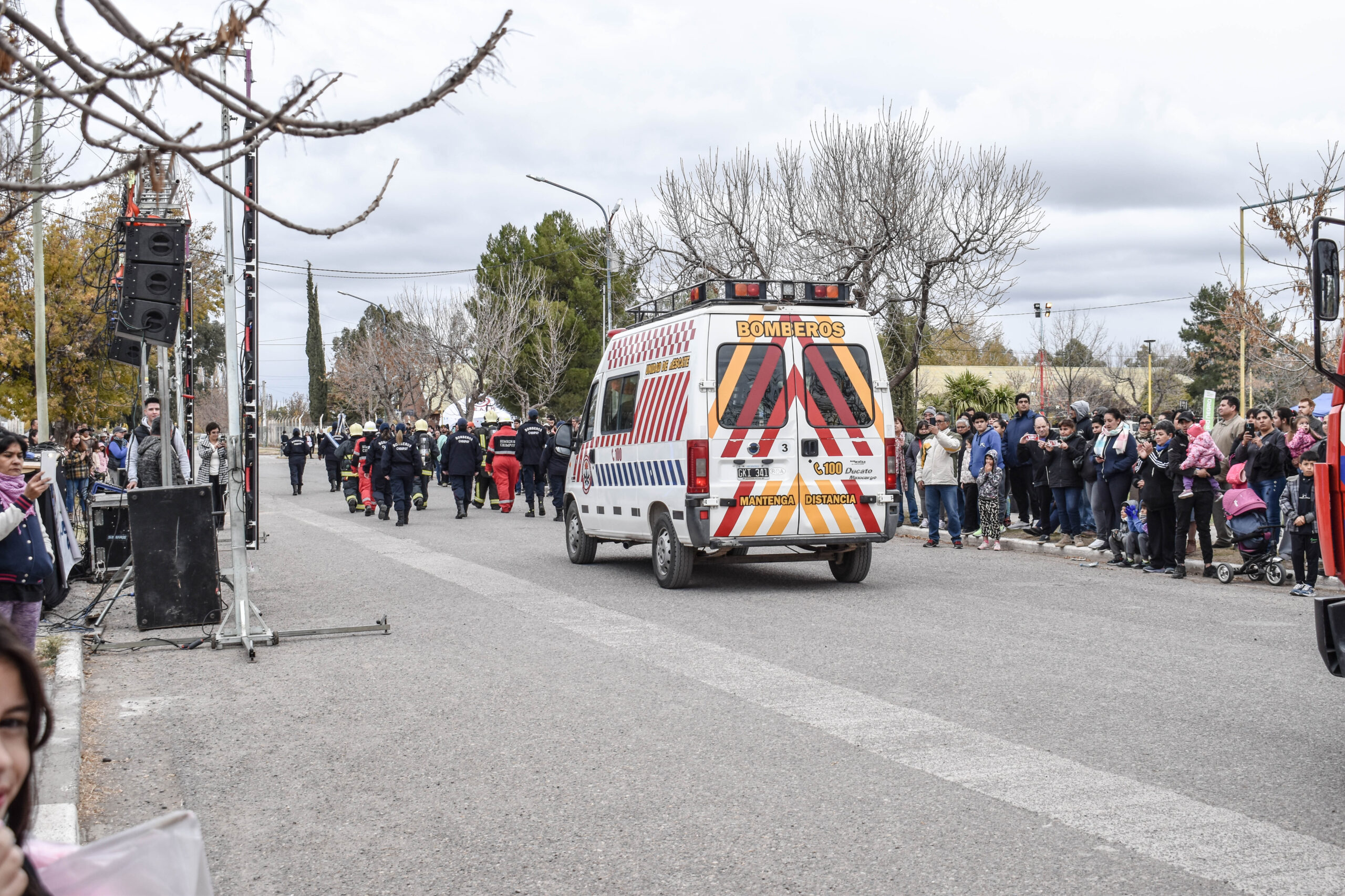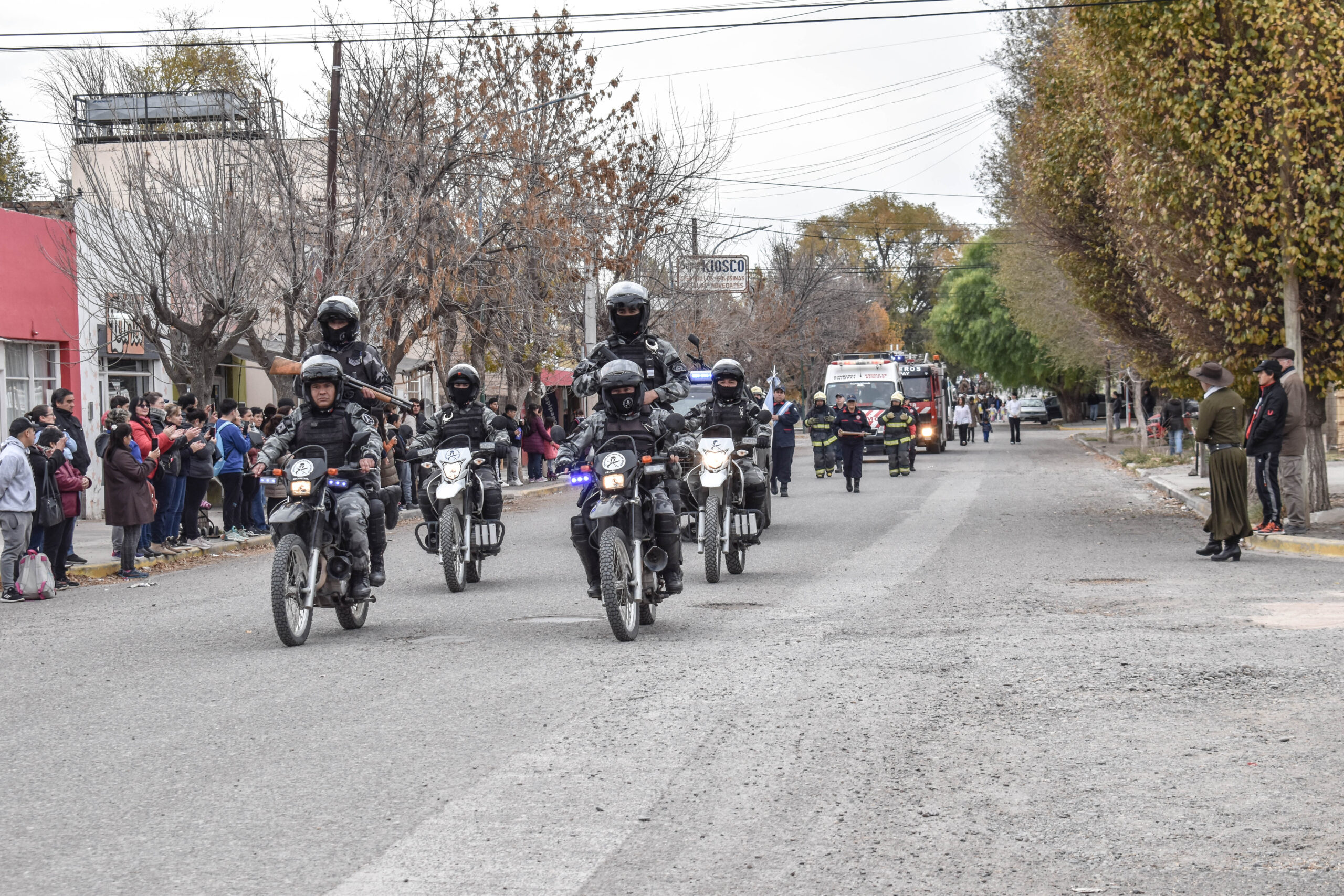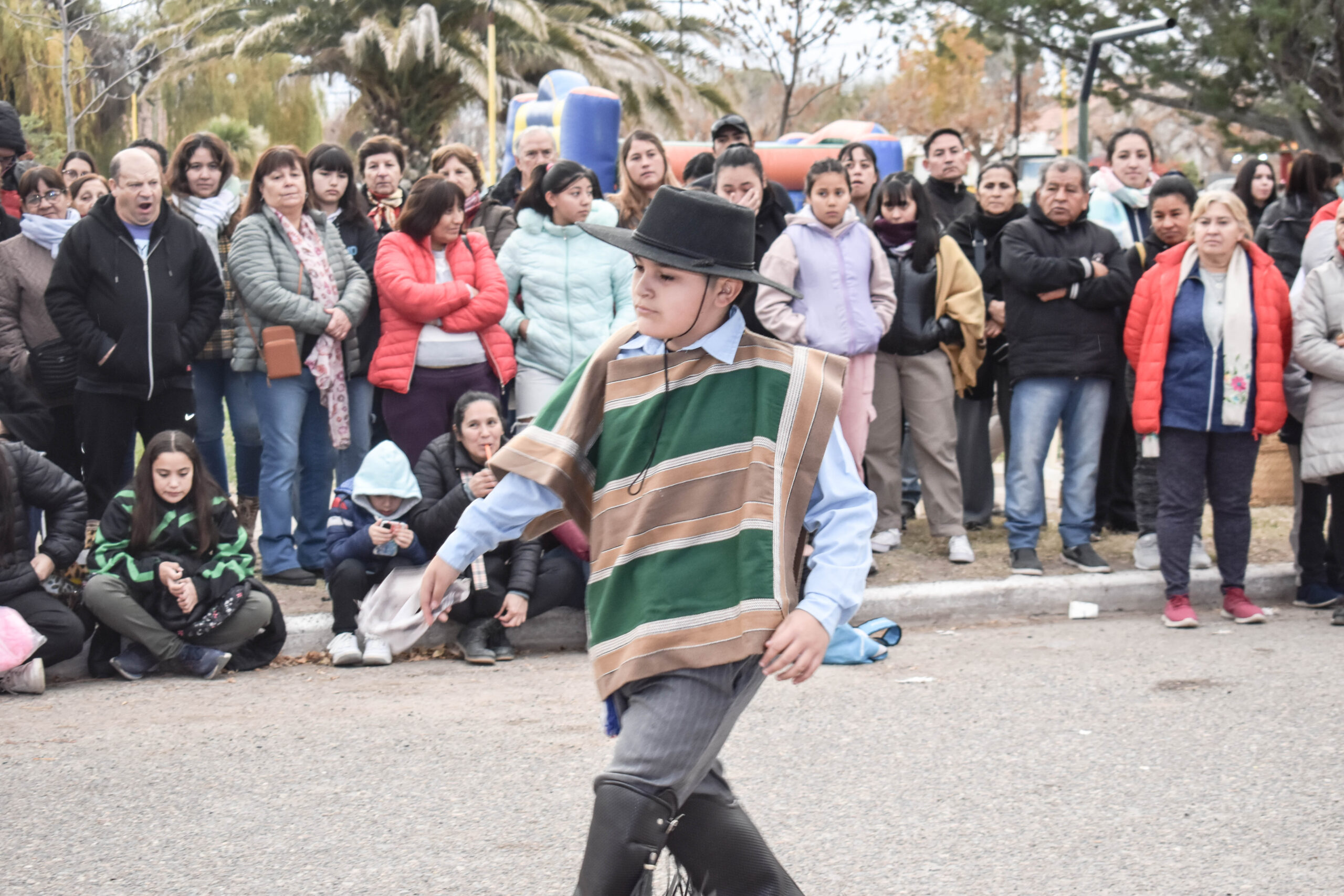 Las actividades se trasladaron hacia el palco ubicado en calle Sarmiento entre el edificio municipal y la Plaza Enrique Hernanz, allí inició el tradicional desfile de las diferentes instituciones.