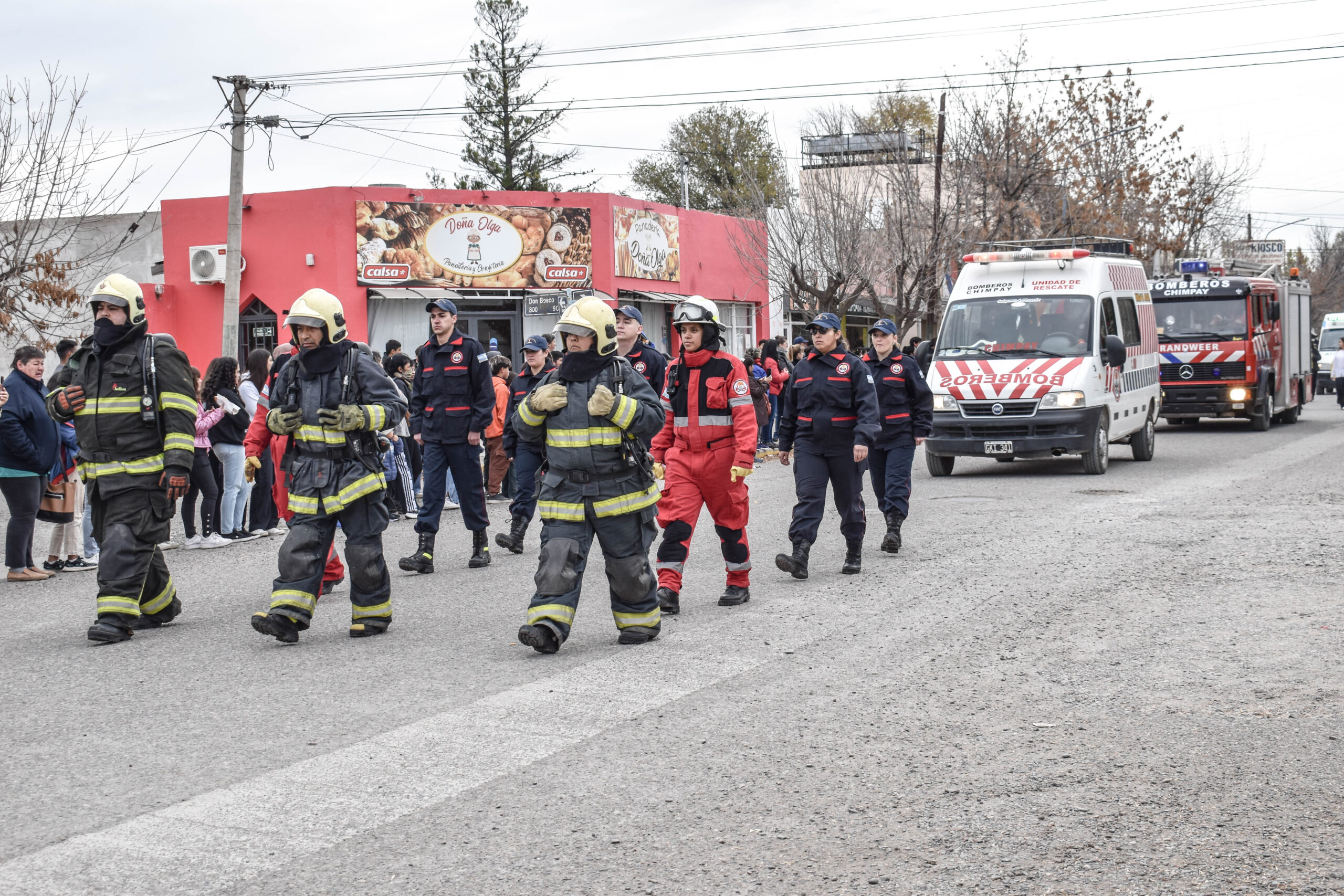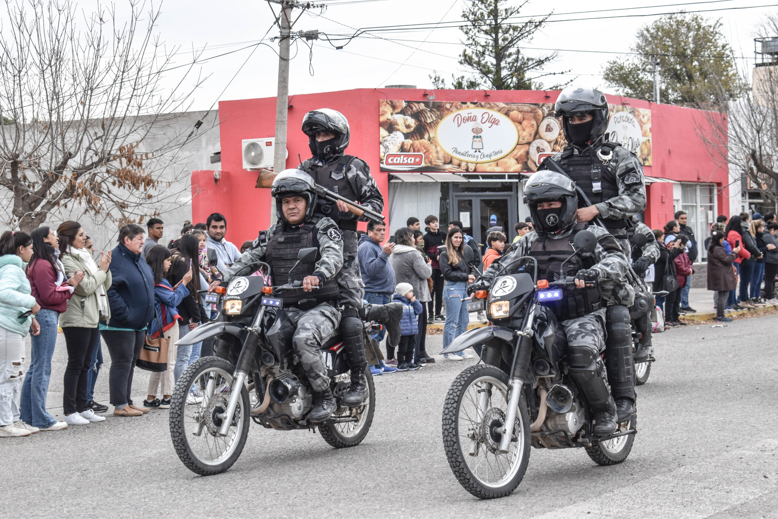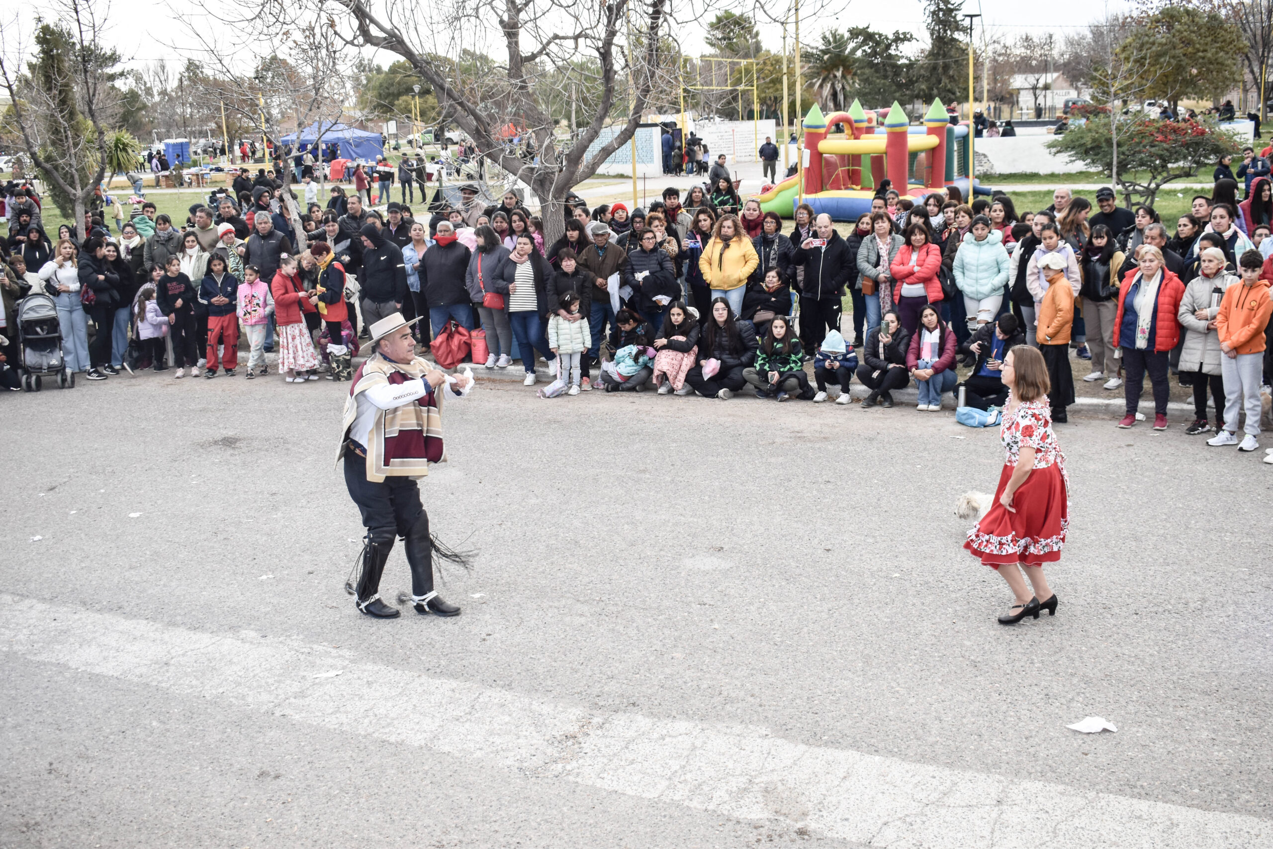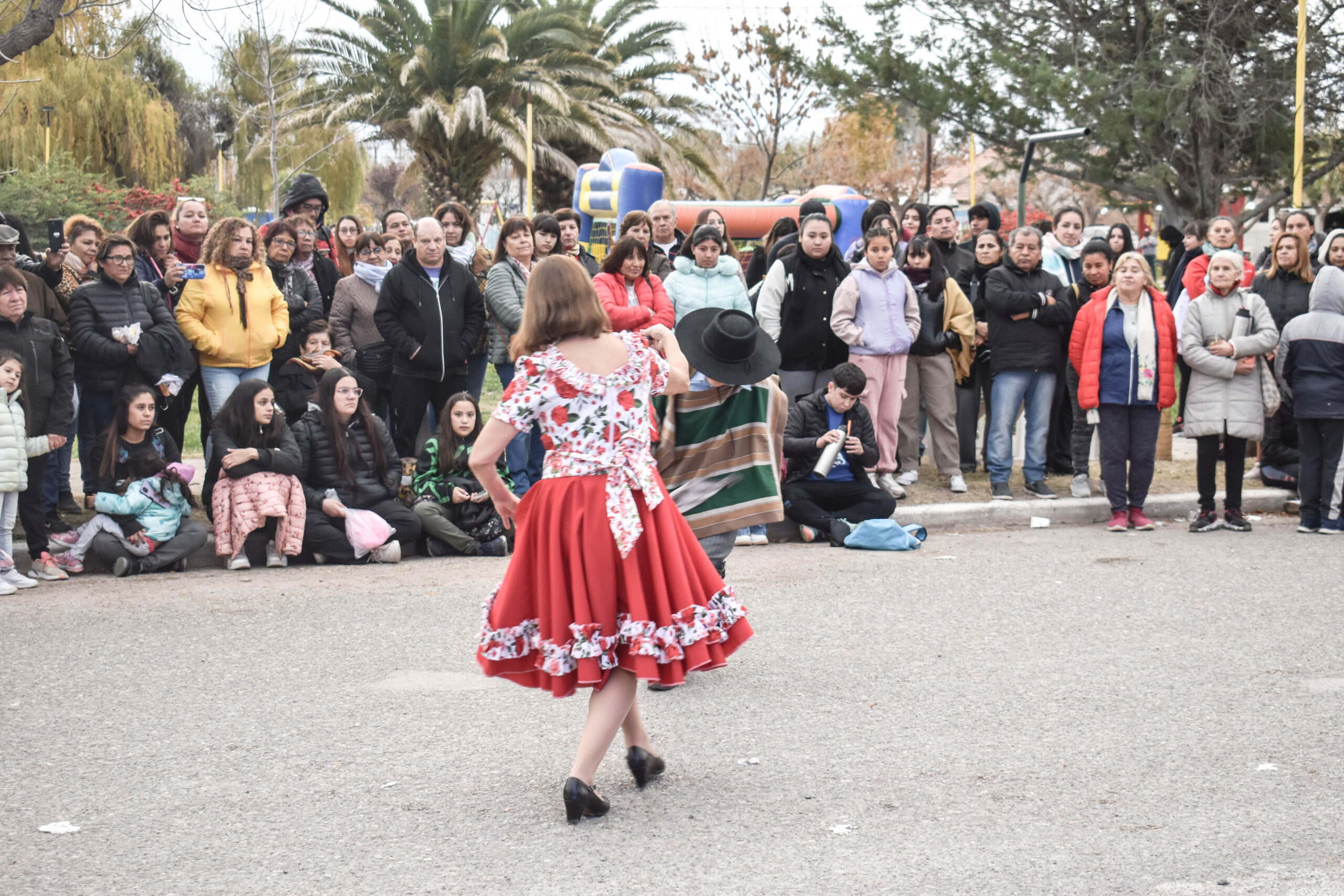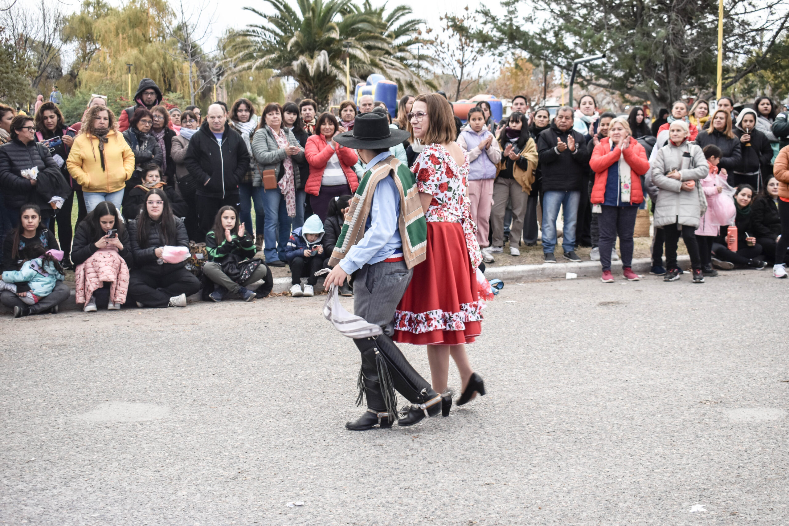 Las actividades se trasladaron hacia el palco ubicado en calle Sarmiento entre el edificio municipal y la Plaza Enrique Hernanz, allí inició el tradicional desfile de las diferentes instituciones.