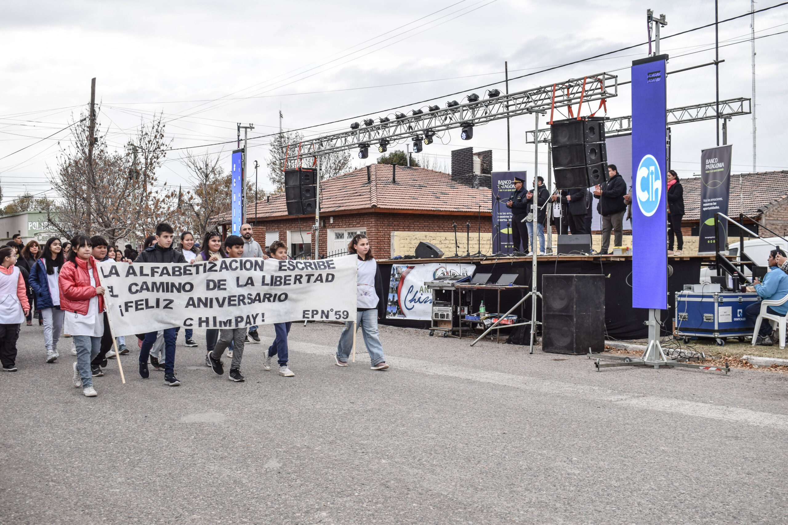 A pesar que el clima del día no acompañó, este sábado 11 de mayo, la localidad de Chimpay disfrutó de un día cargado de festejos y reconocimientos, vecinos y vecinas vivieron un día especial en su aniversario N°119.