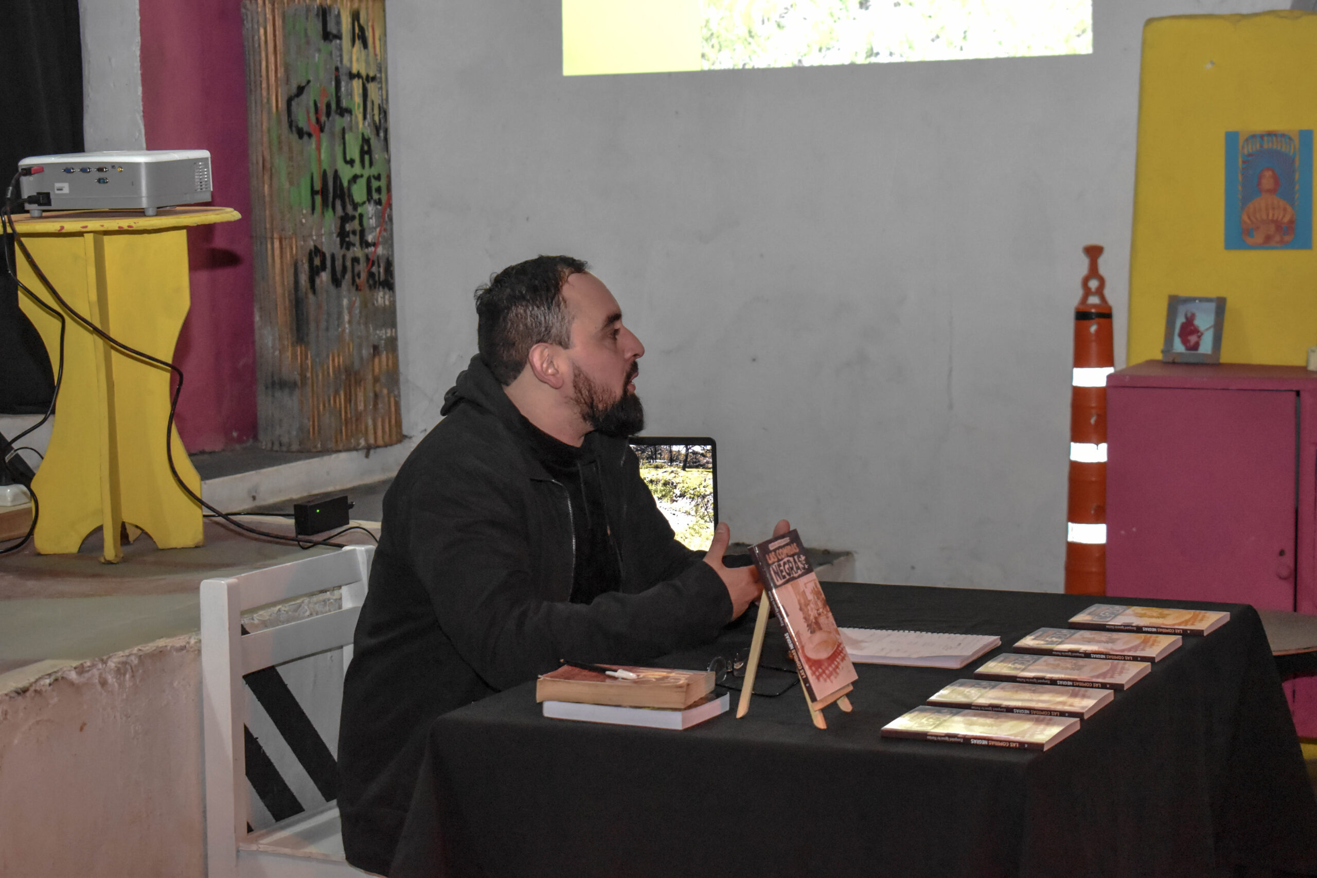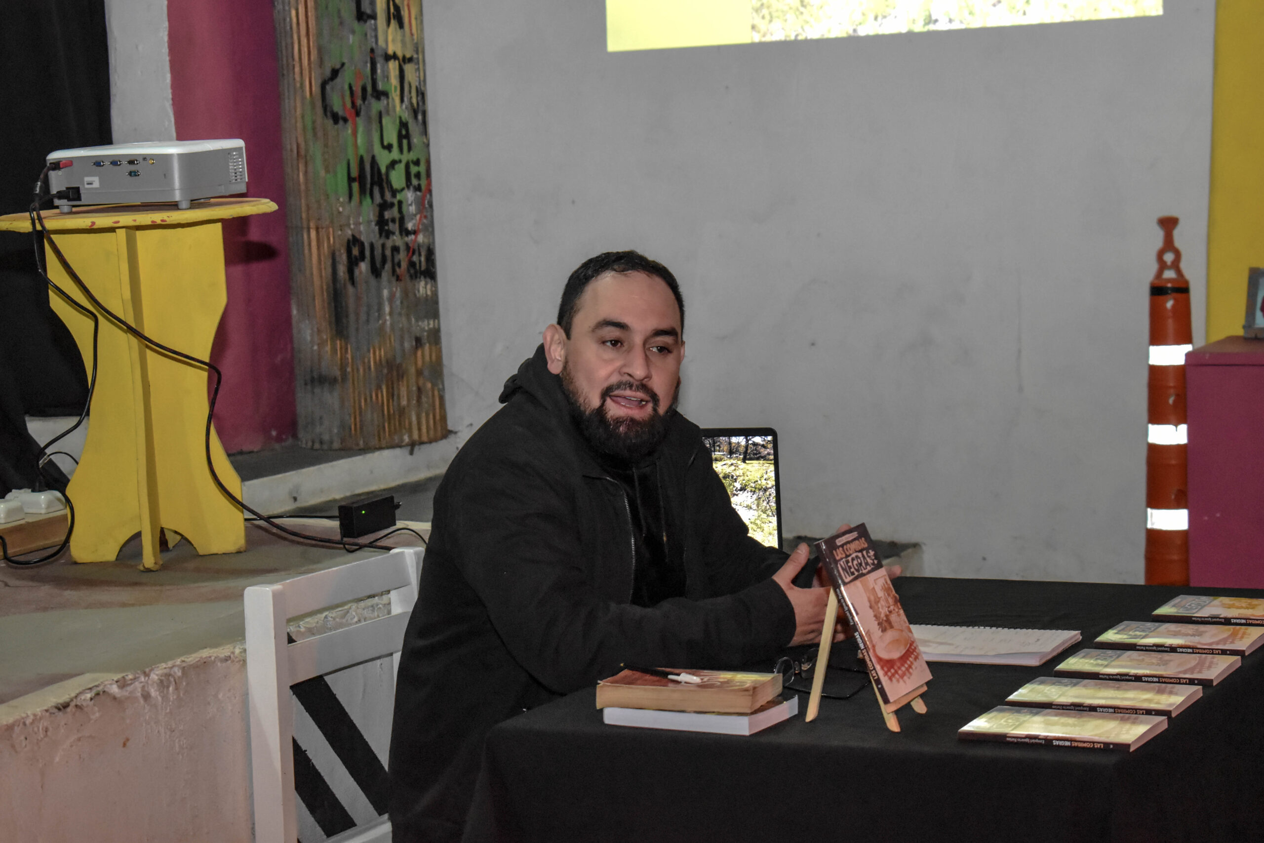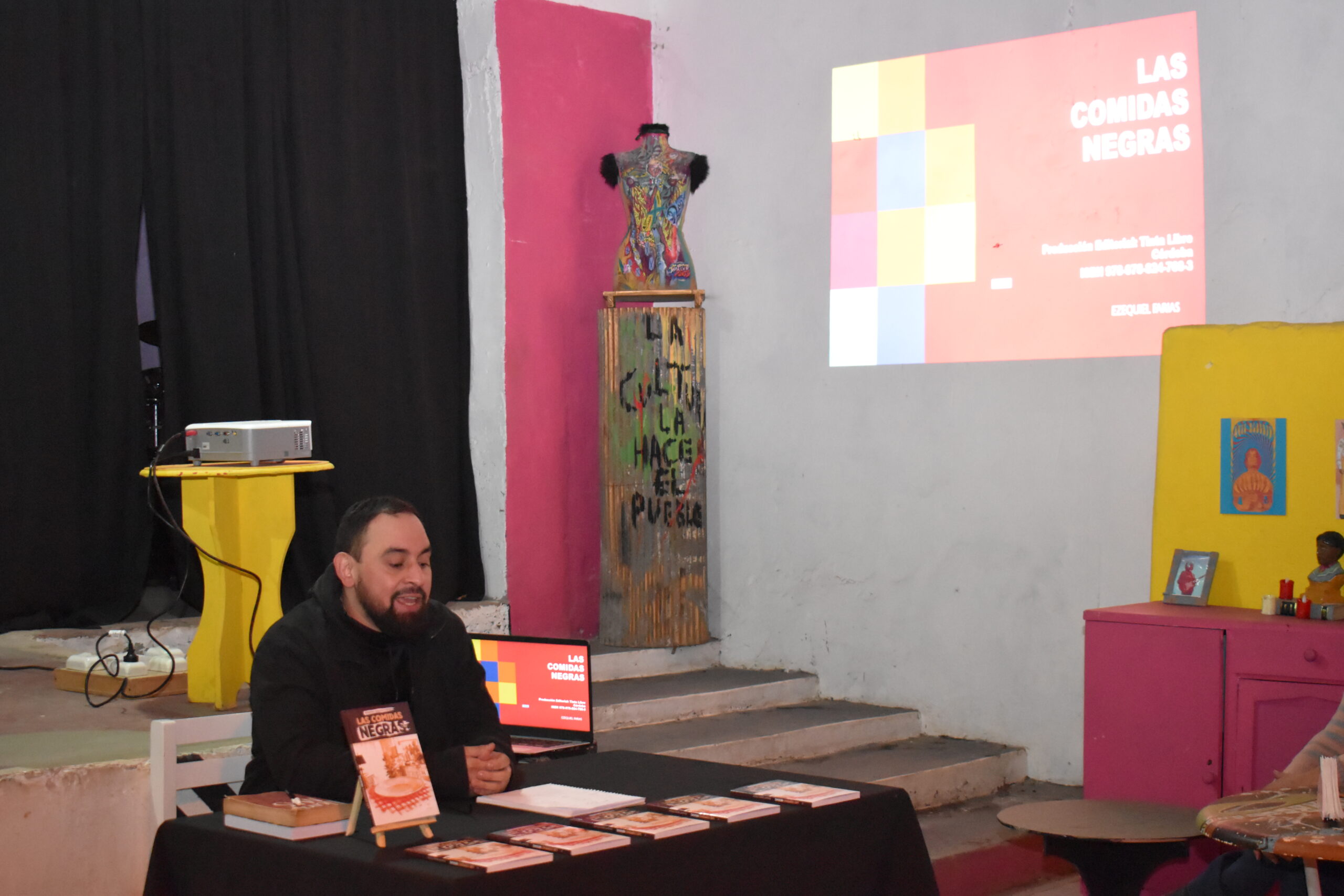 Mas tarde la presentación tuvo lugar en el espacio cultural “En Escena” con la modalidad de «café literario», allí se compartió una charla abierta a la comunidad relatando su experiencia durante la creación de su obra.